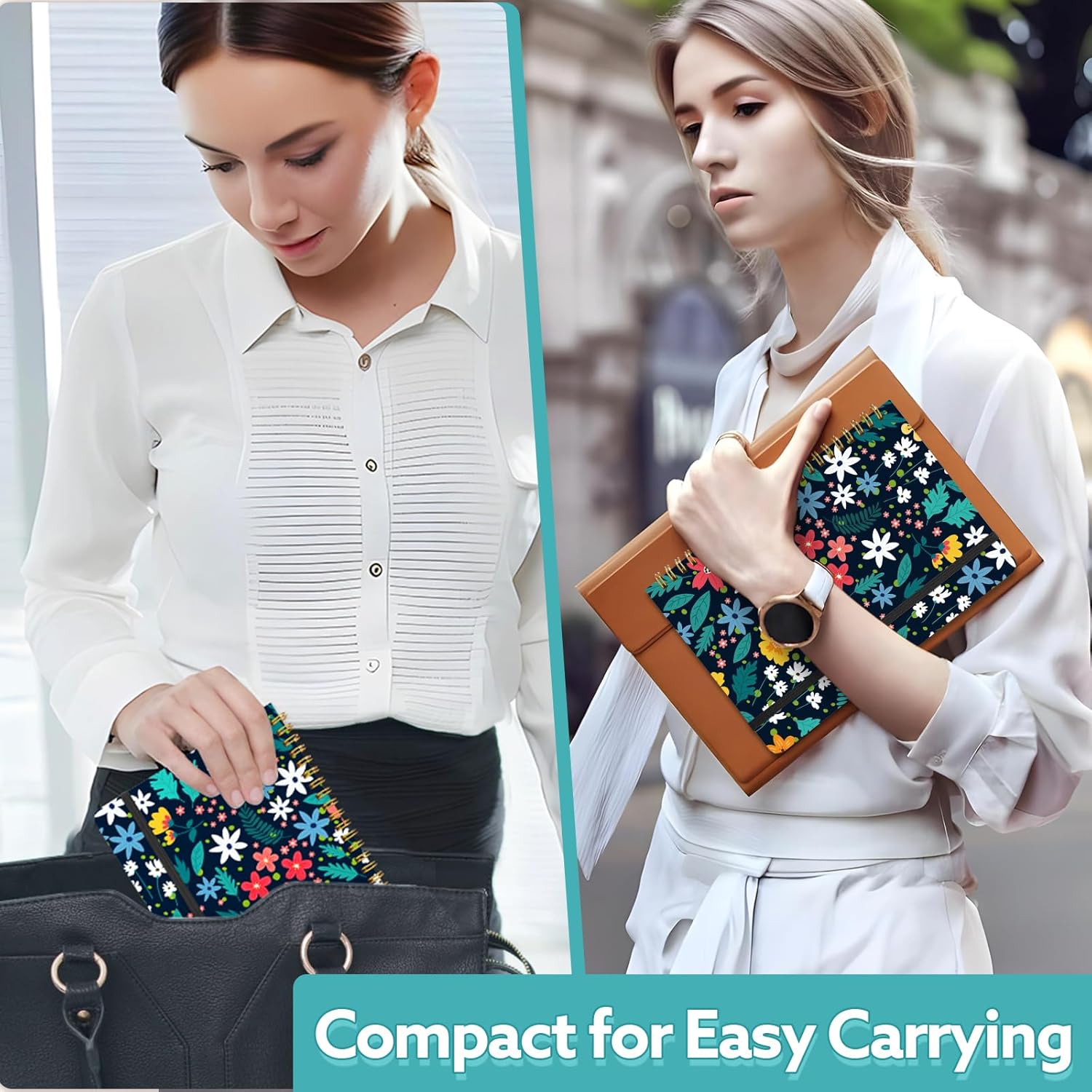 Lined Spiral Notebook, 140 Pages College Ruled Journal for Women A5 Journaling Notebooks for Work & Note Taking Perfect for Men Women Office Home School, 5.9" x 8.3" - Black Flower