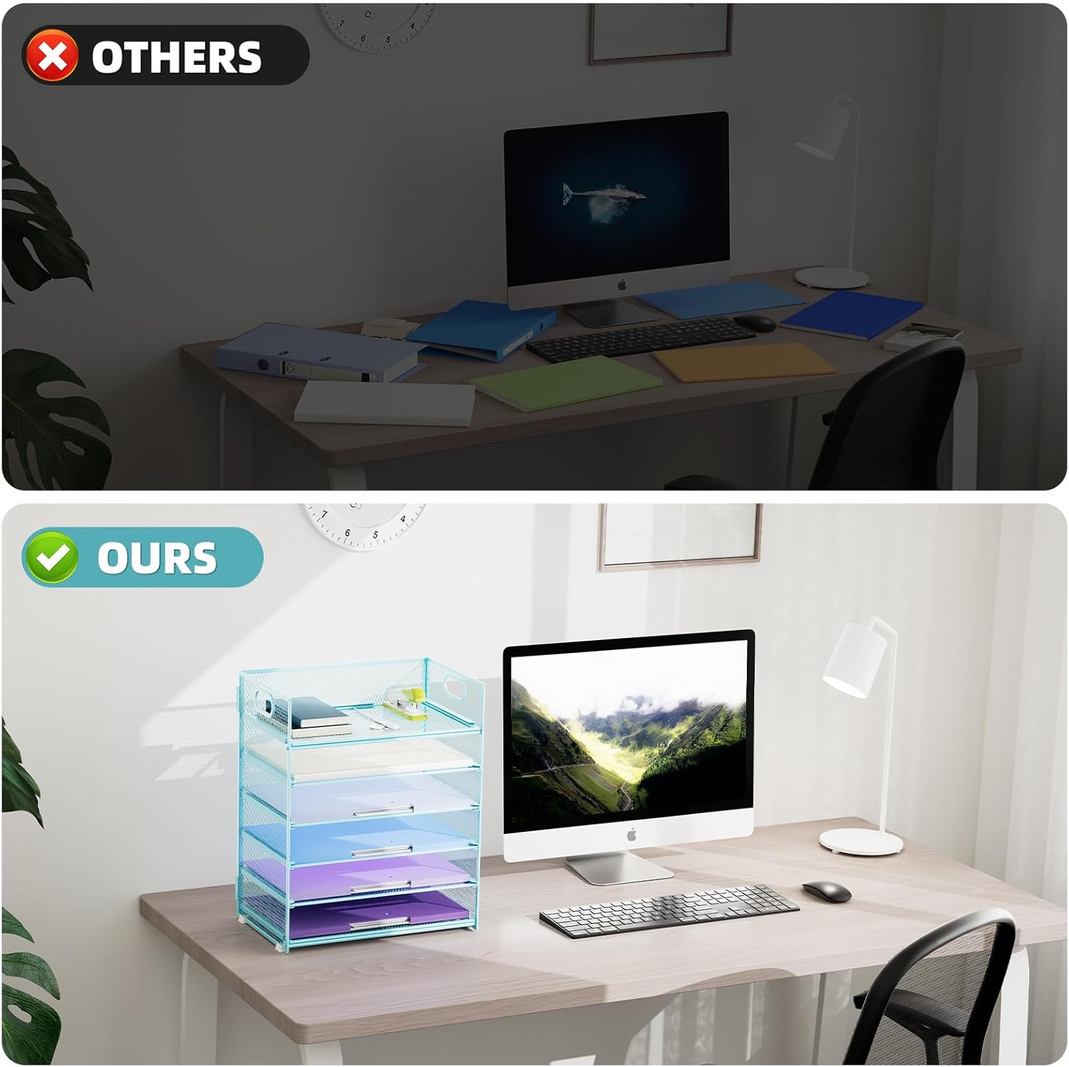 - 【MULTI-PURPOSE ORGANIZER】2 Pack 6-tier layered design and large capacity make the paper organizer become an ideal choice for managing all kinds of letter-size letters, paper, books, bills, etc. Let you quickly identify the contents of each compartment super easy!