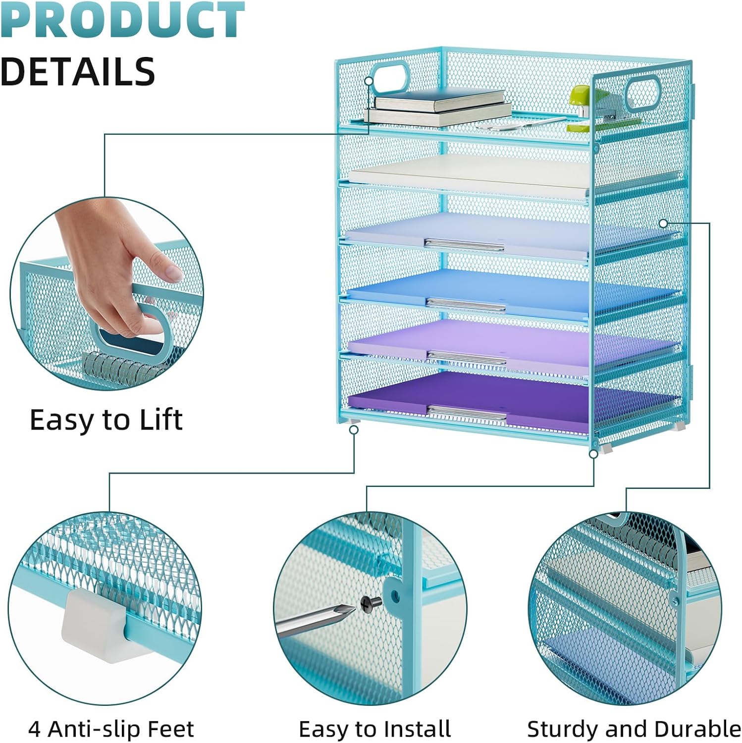 - 【HIGH QUALITY】The mesh desk file organizer is made of lightweight durable metal mesh and reinforced with a solid steel frame that makes it have long-lasting strength and reliable performance