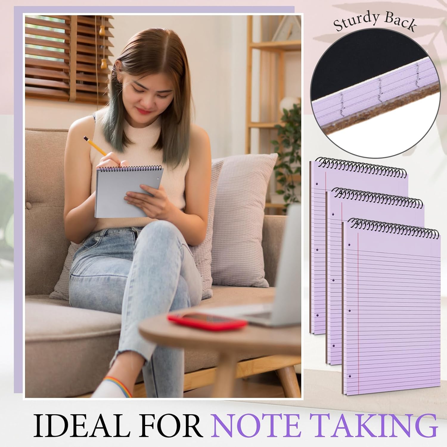 3 Packs 8.5" x 11" Top Spiral Notebook with 3 Hole Punched Legal Pads College Ruled Notepad 50 Sheets Hard Cardboard Paper Wirebound Notepad for Office School Business (Purple)
