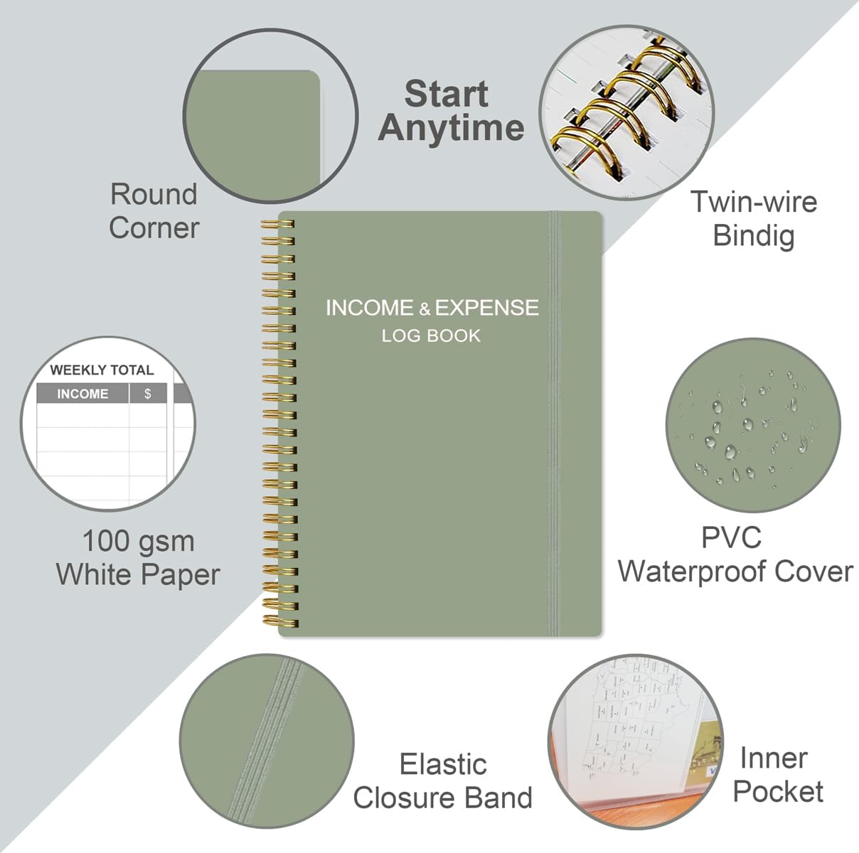 - UNIQUE DESIGN & A4 SIZE - Income and expense log book is spiral bound design, size of 8" x 10.5". Just the perfectly size to fit in your backpack, purse or laptop case. Without taking up your space and always helping you keep track of your small business