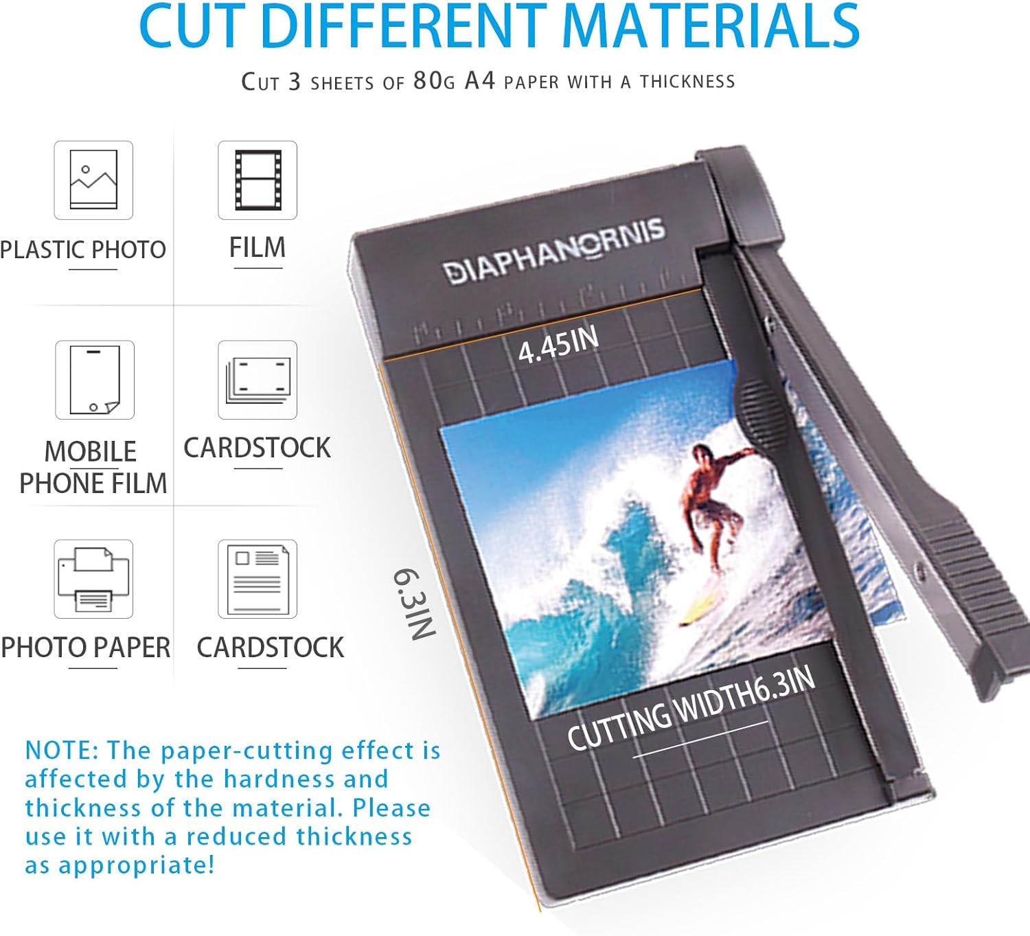- Precise cutting, easy alignment:Mini compact paper cutter is equipped with a 1/4-inch grid design, precisely aligning the paper. It supports cutting widths up to 6 inches, ensuring that each cut is straight and neat. It is particularly suitable for small photos (4x6 inches), handcrafted paper, and document organization.
