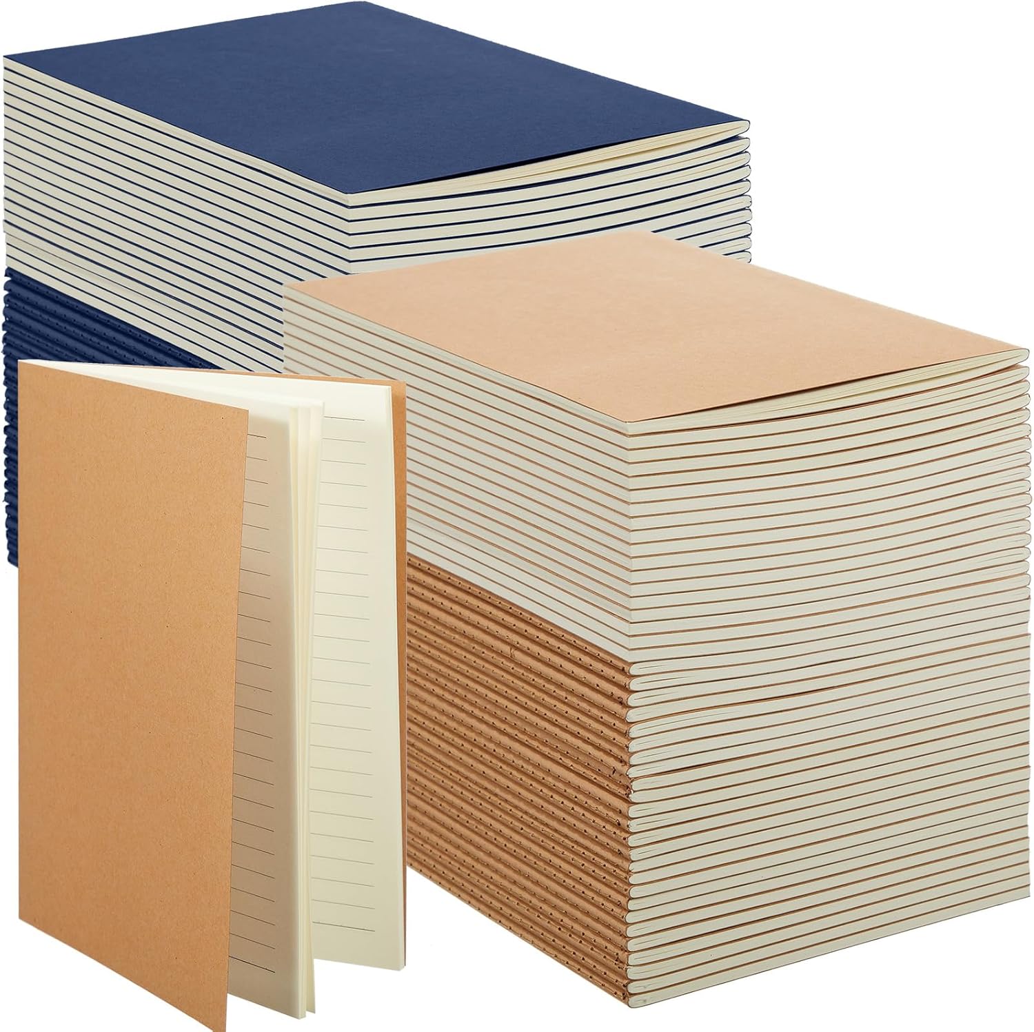 - Package Content: there are 100 pieces A5 kraft notebooks, contains 50 Brown and 50 Navy Blue, each unlined kraft travel journals with 60 pages/ 30 sheets, abundant quantity to meet your daily needs at home or school, or you can share them with your classmates