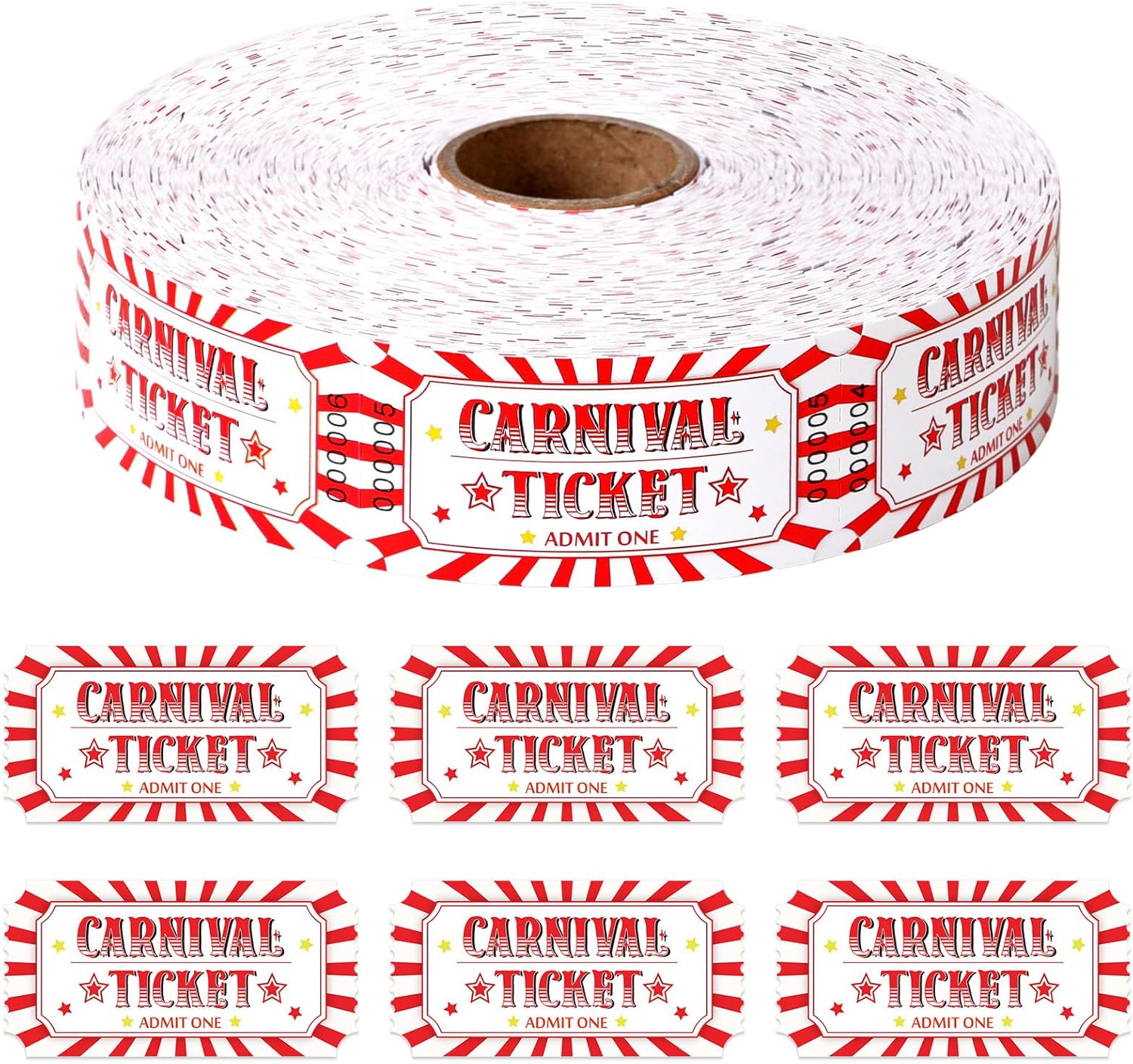 - Considerate design: Our carnival tickets are printed in the classic red stripe pattern with stars as embellishment, bright colors, and have the words "CARNIVAL TICKET" to give guests a great experience at the event.