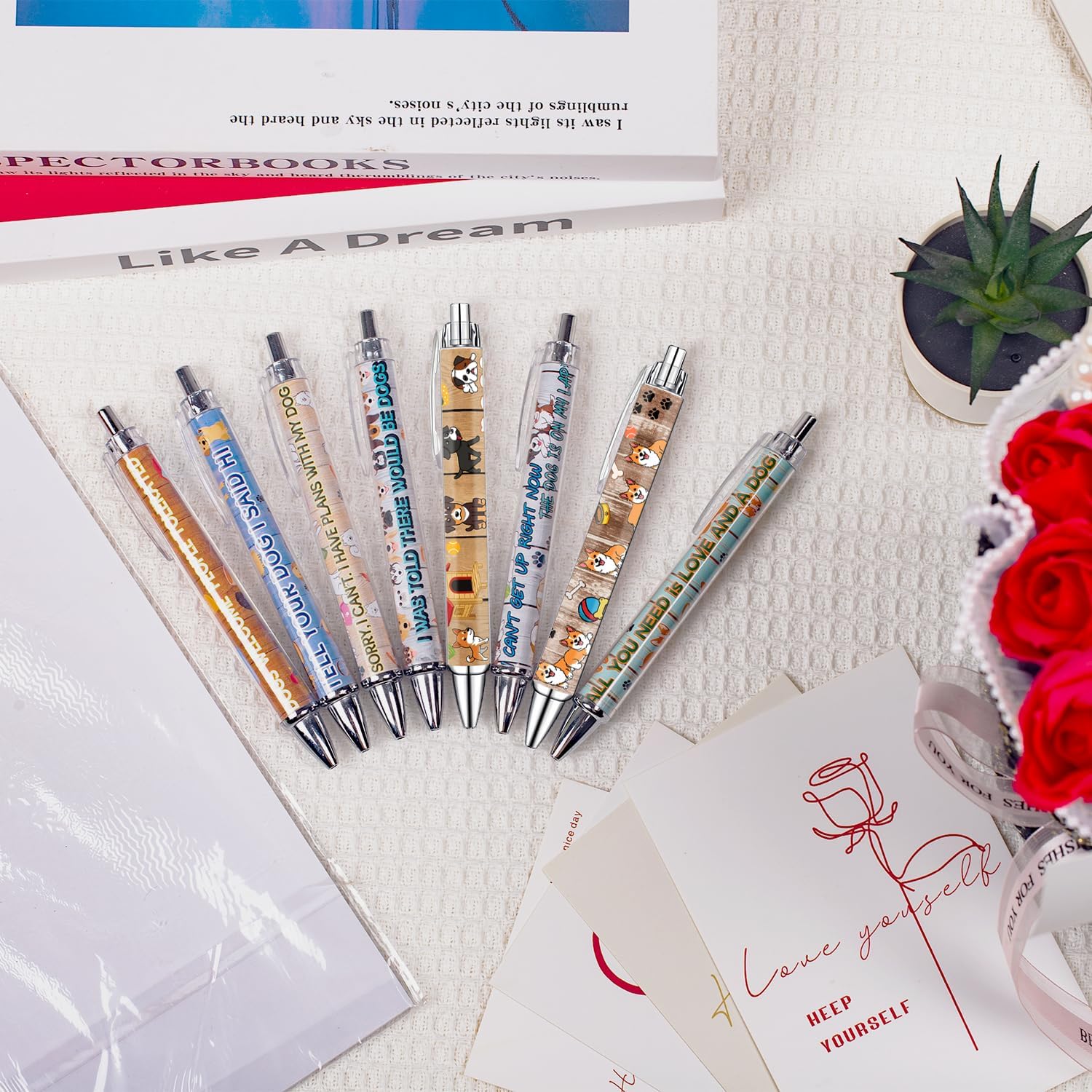 - Adorable Dog-Inspired Designs: Our pens feature playful dog illustrations, from fluffy pups to wagging tails—bringing canine charm to your writing routine and brightening every note with puppy love.