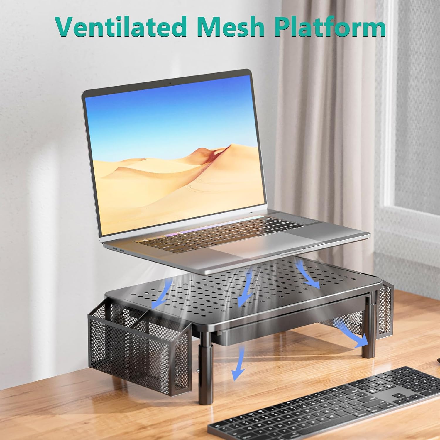 - Storage Space: This laptop riser with storage with a removable drawer keeps smaller items out of sight for a more productive and tidy working environment. Pull out the drawer to have extra space underneath for office supplies such as compact keyboard, book, documents, etc