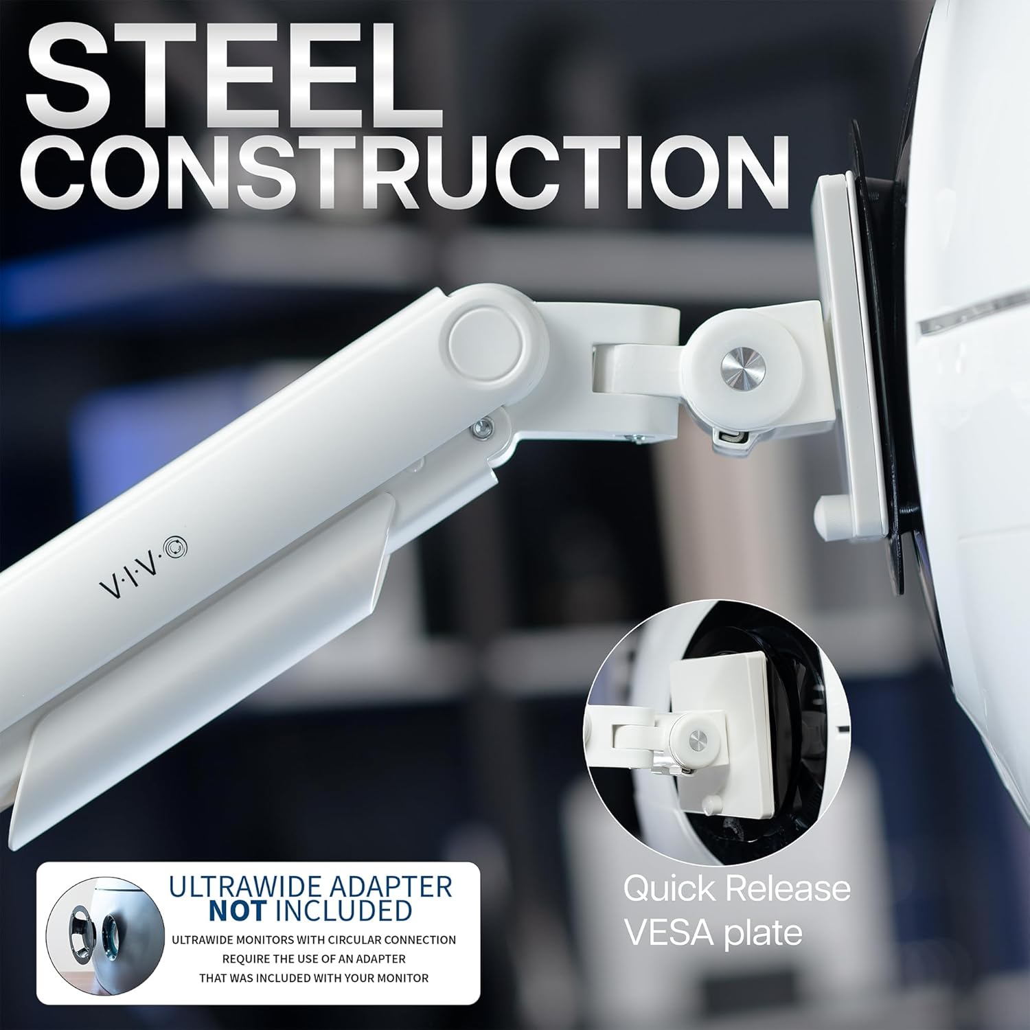 VIVO Heavy Duty Aluminum Ultrawide Monitor Tension Arm for up to 49 inch Screens, Holds 44 lbs, Premium Desk Mount Stand Designed for Samsung Odyssey G9 and More, White, STAND-V101VW