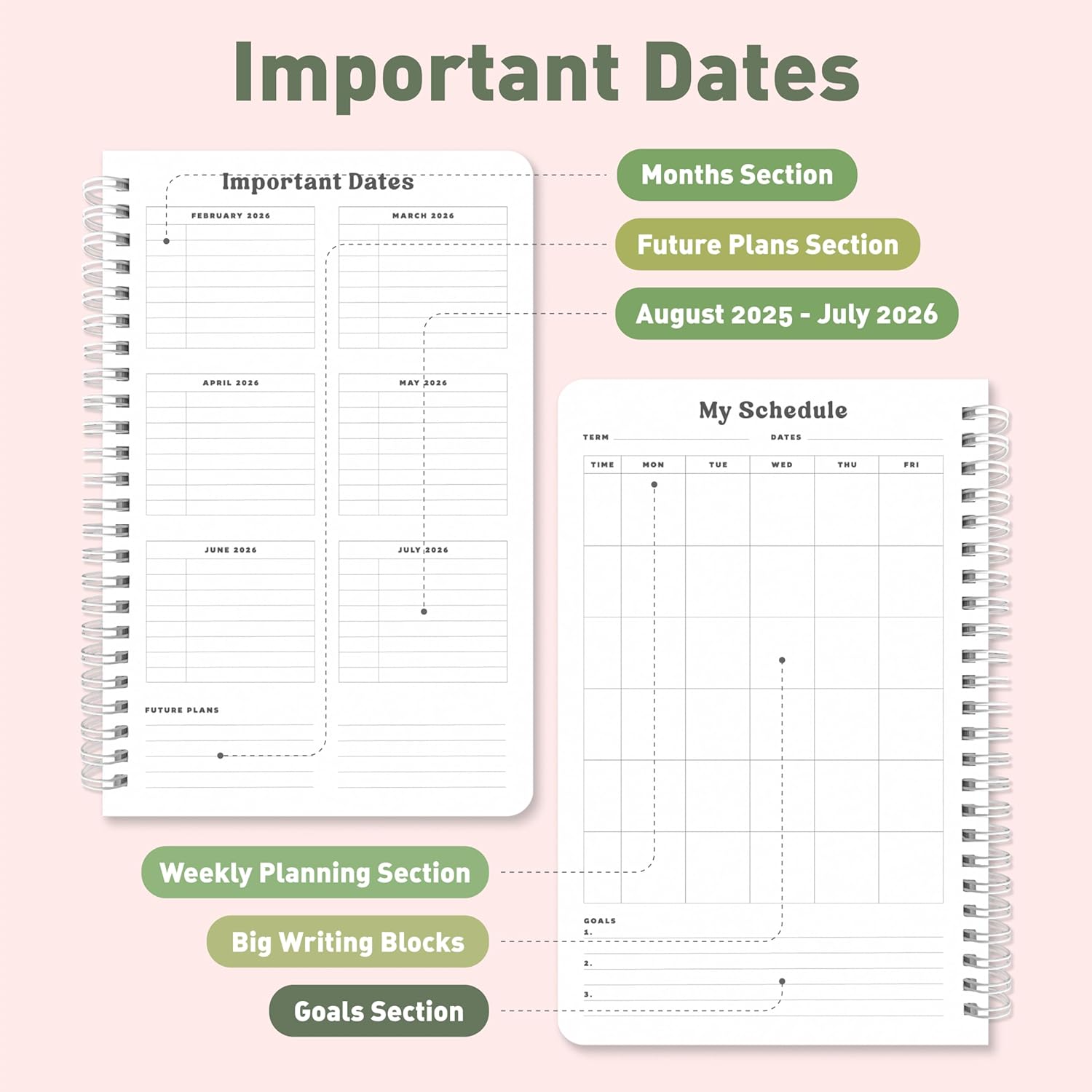 - Smartly Organized Pages – Includes dedicated spaces to log important dates and recurring weekly schedules, making it easy to stay organized and ahead of deadlines. Ideal for students, teachers, and busy professionals alike.