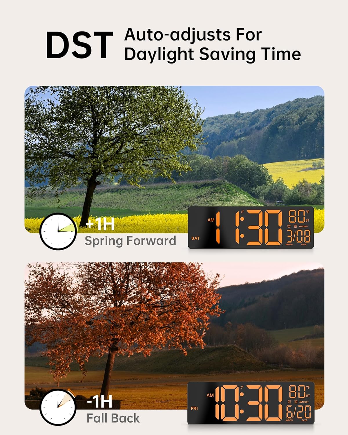 - Dual Alarms & Auto DST: Set one alarm for your busy work schedule and a separate, later one for lazy weekend mornings. The clock automatically switches between them—no nightly adjustments needed. The alarm clock automatically jumps ahead or falls back for Daylight Saving—so you wake up to the right time, every time.