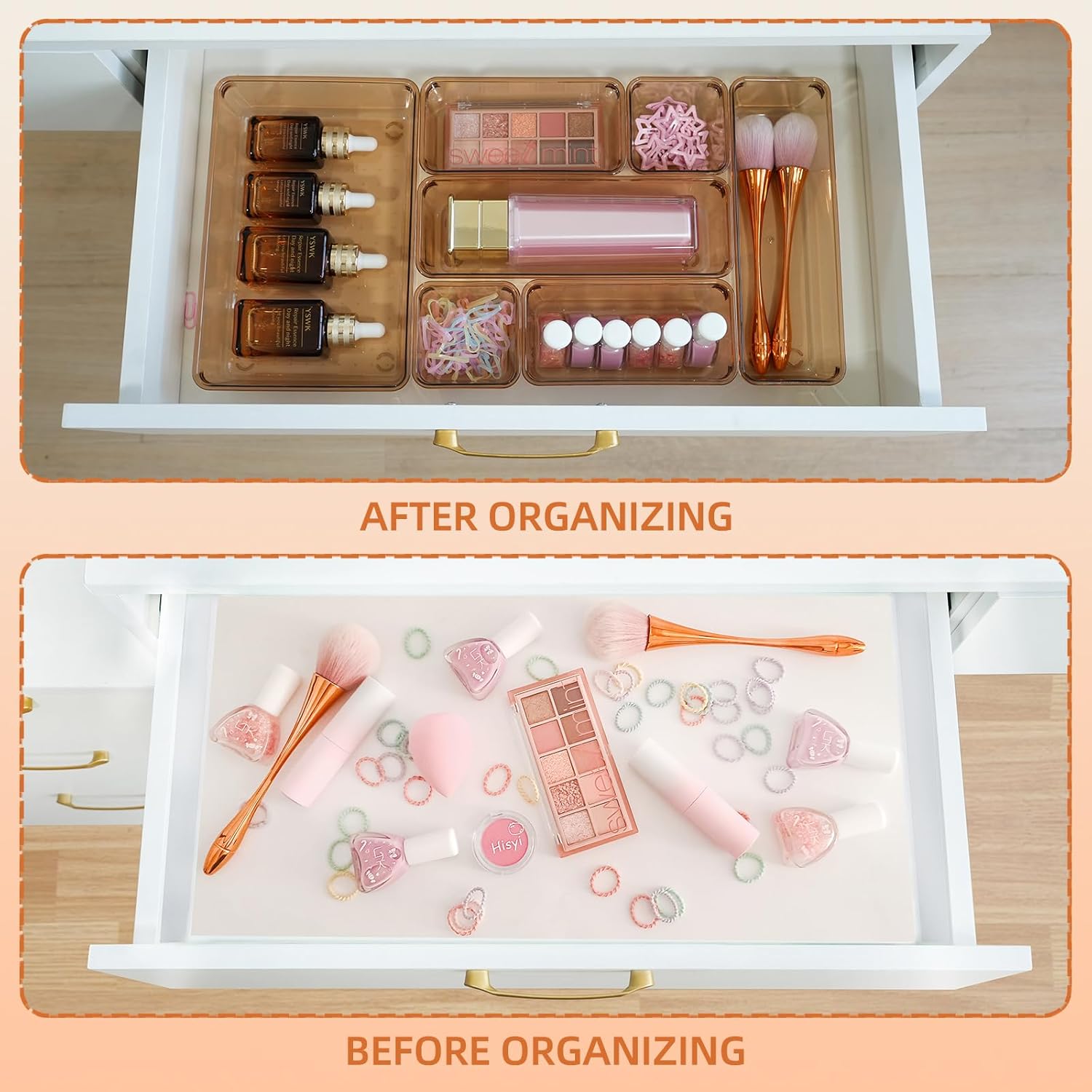 - 【EASY TO CLEAN】 Our acrylic drawer organizer is easy to wipe clean with a damp cloth, convenient for you to use it in your daily life and make your room look more beautiful and organized.