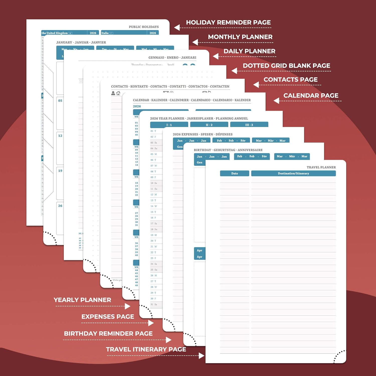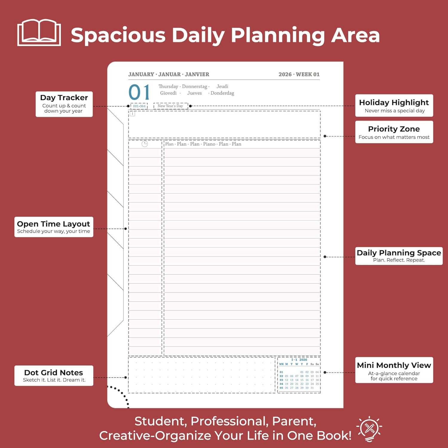 - Professional Grade Material for Your Daily Planner: Crafted with FSC 80GSM thick paper, this day planner 2026 daily and monthly ensures good writing while gentle on your eyes through its ivory white pages. The leather soft cover and lay flat binding make it a calendar planner companion for busy professionals, students, and families