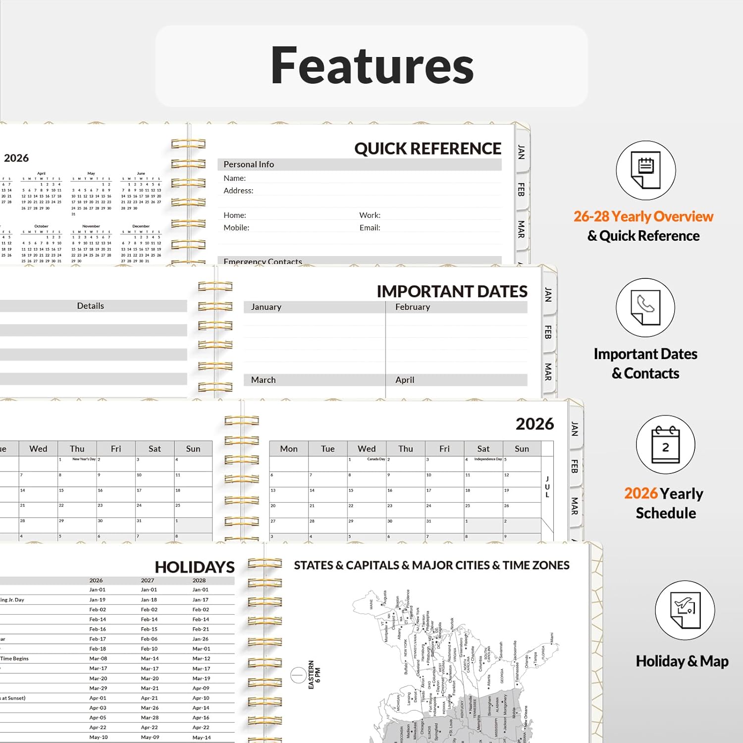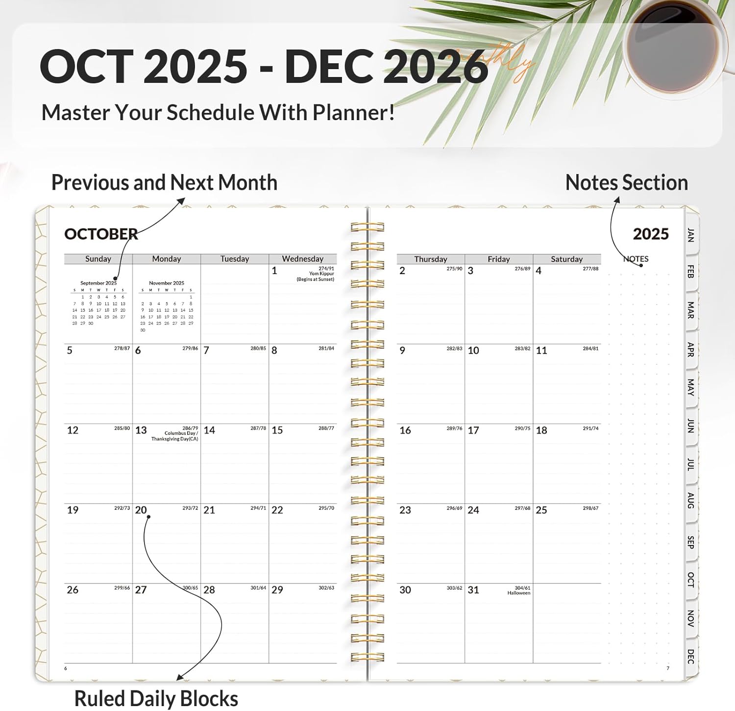 - Plan Confidently β Cover from January 2026 to December 2026, Features 12 months of monthly and weekly pages, and also inclueds 3 extra monthly pages for October to December 2025 and 12-monthly tabs, with Lay-flat capability for all your planning and scheduling needs, and measures 6.4" x 8.3"
