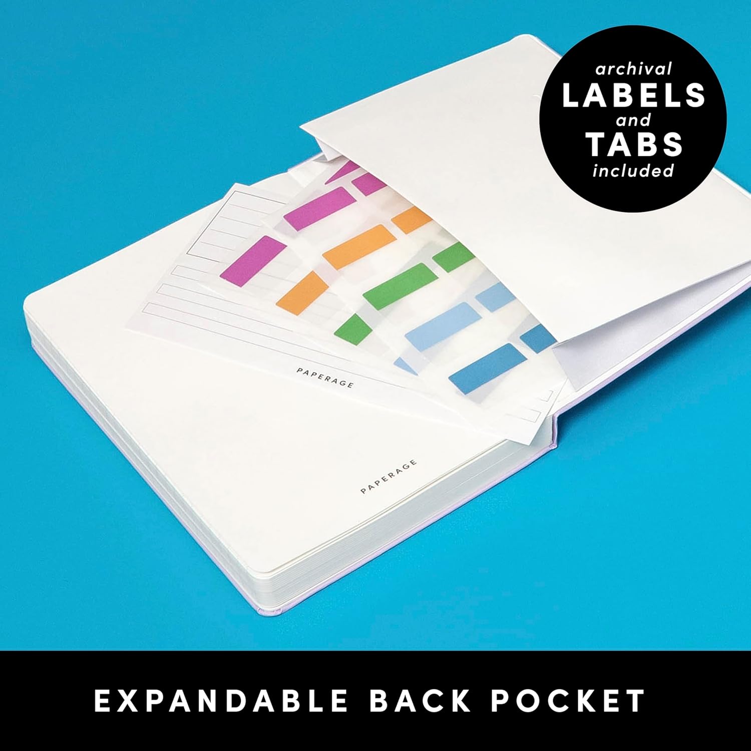 - INNER POCKET: Includes an expandable inner storage pocket to store appointment cards, notes, receipts, and more. Personalize your journal cover & spine with the sheet of sticker labels included.