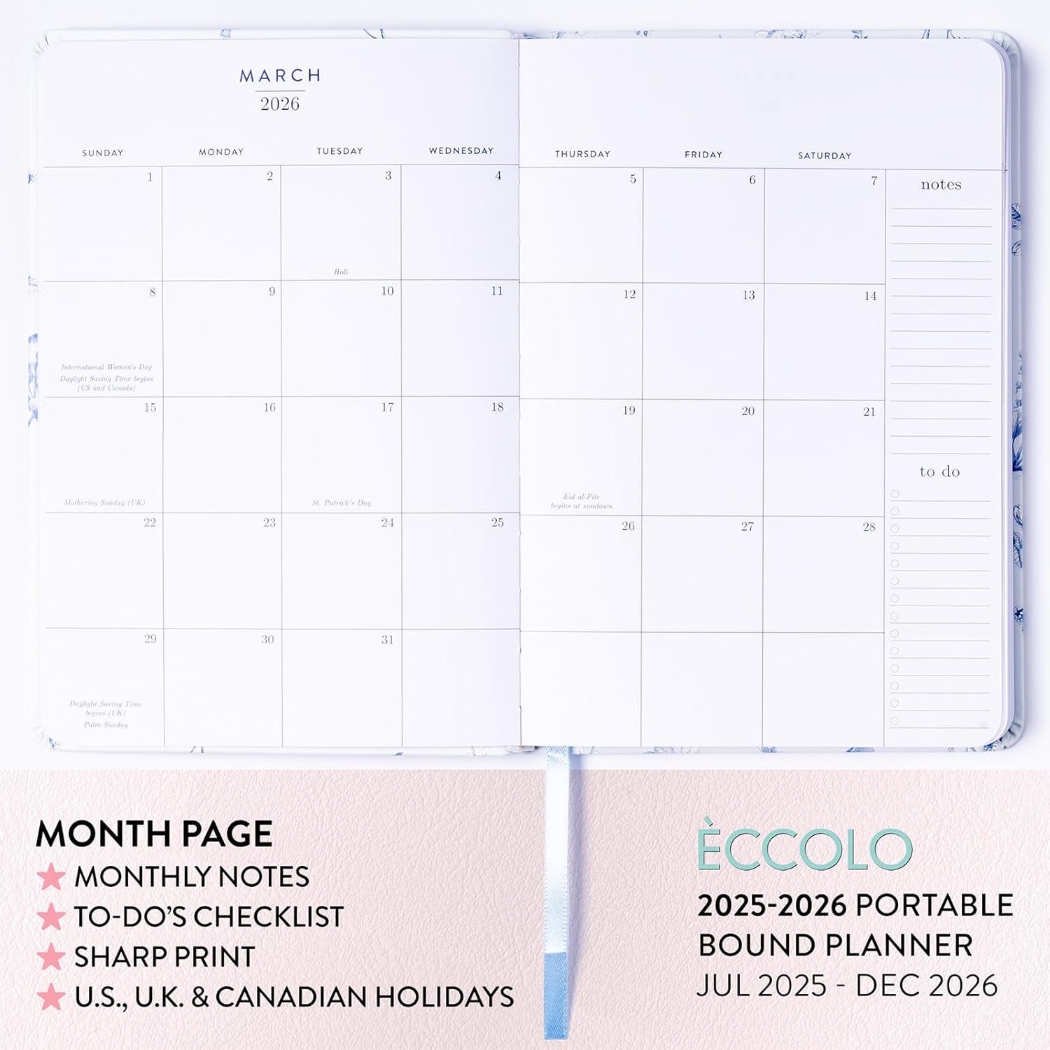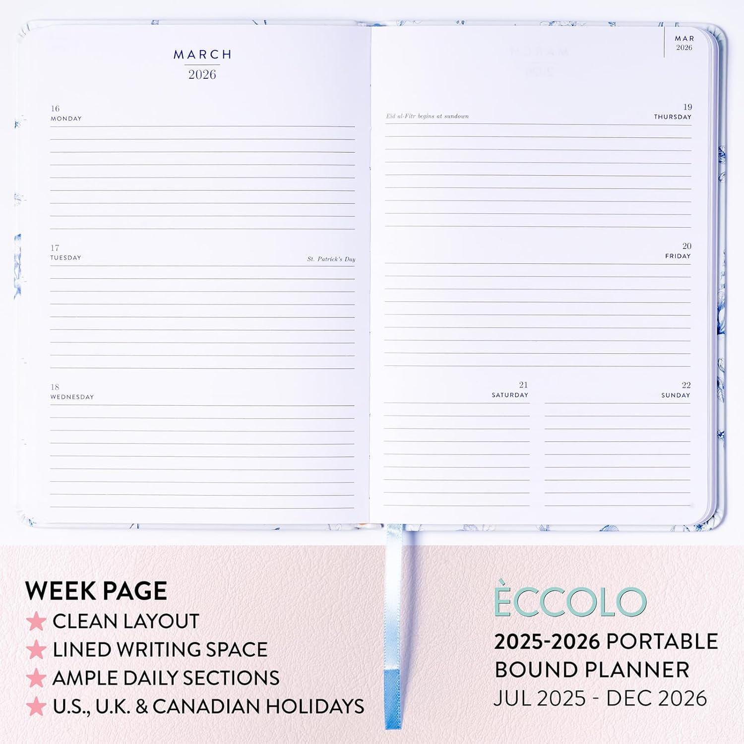 2025-2026 Eccolo 18 Month Bound Planner, Monthly & Weekly Pages (5.25 x 7.75" - July 2025 to Dec 2026 - Country Charm)