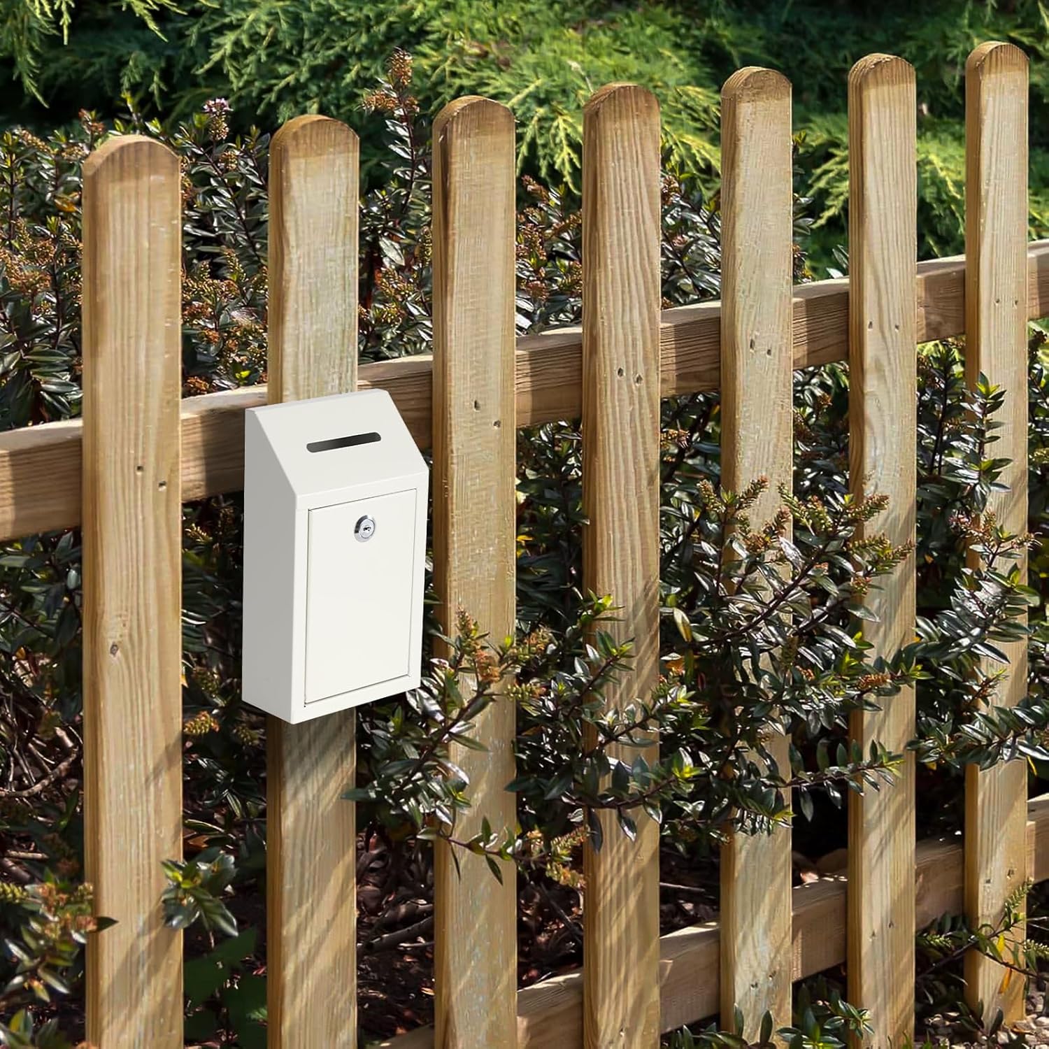 KYODOLED Money Cash Drop Box with Lock, Metal Donation and Suggestion Box with Slot Wall Mounted for Farm or Office, Home, Outdoor, White, 10.24 x 5.7 x 2.95 Inch