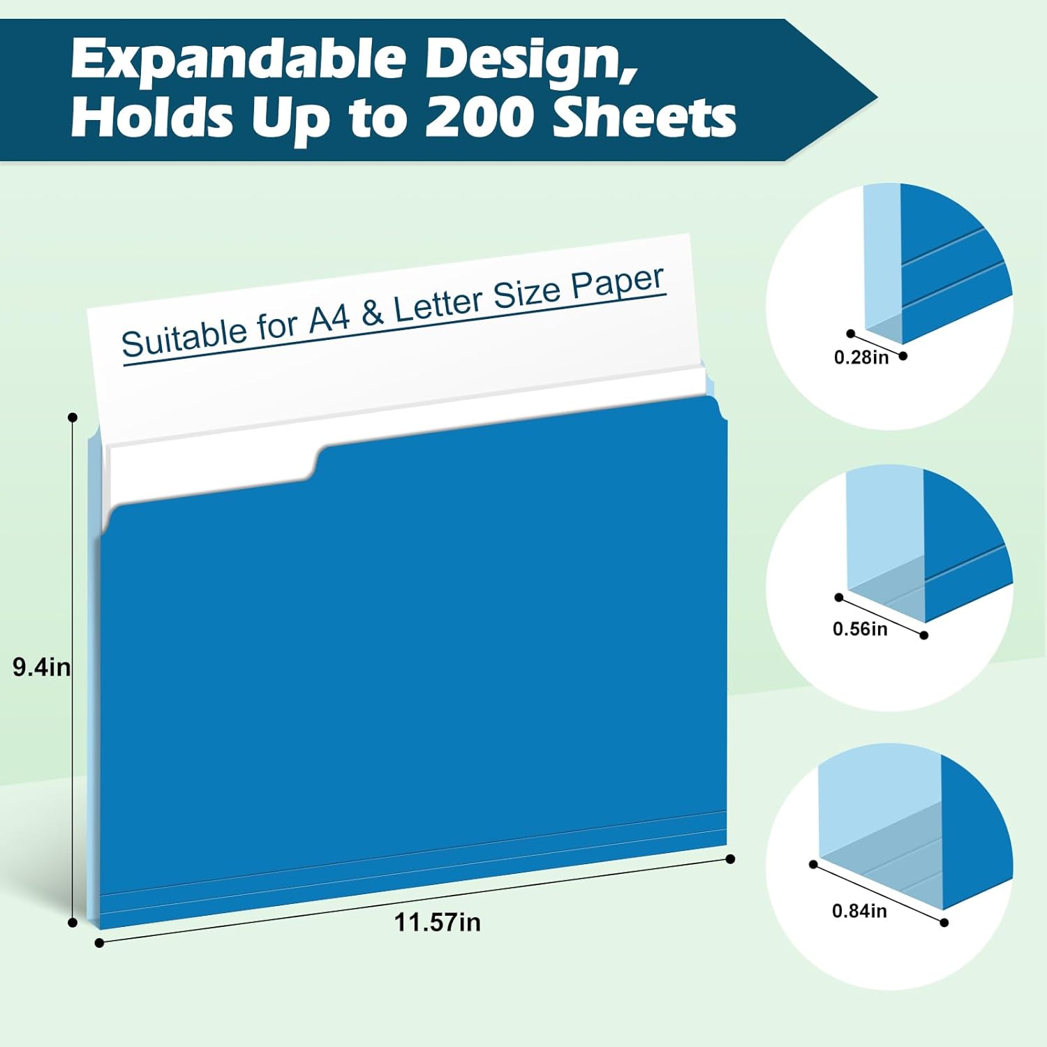 - Two Tone Color Letter Size File Folder - These color file folders have light interiors for easy pen marking, making them easier to read and find what you need at a glance, locate important documents. Letter Size Documents file folders fit standard-sized paper (8.5" W x 11" H) for a complete filing solution.