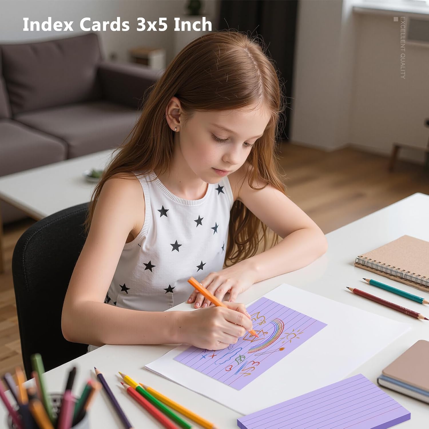 600 Count Index Cards 3 x 5 Inch Purple Lined Flash Cards Ideal for Studying and To-do-List, Portable Note Cards Taking for Students and Teachers, Flash Card Styled for Home, Office or School Use