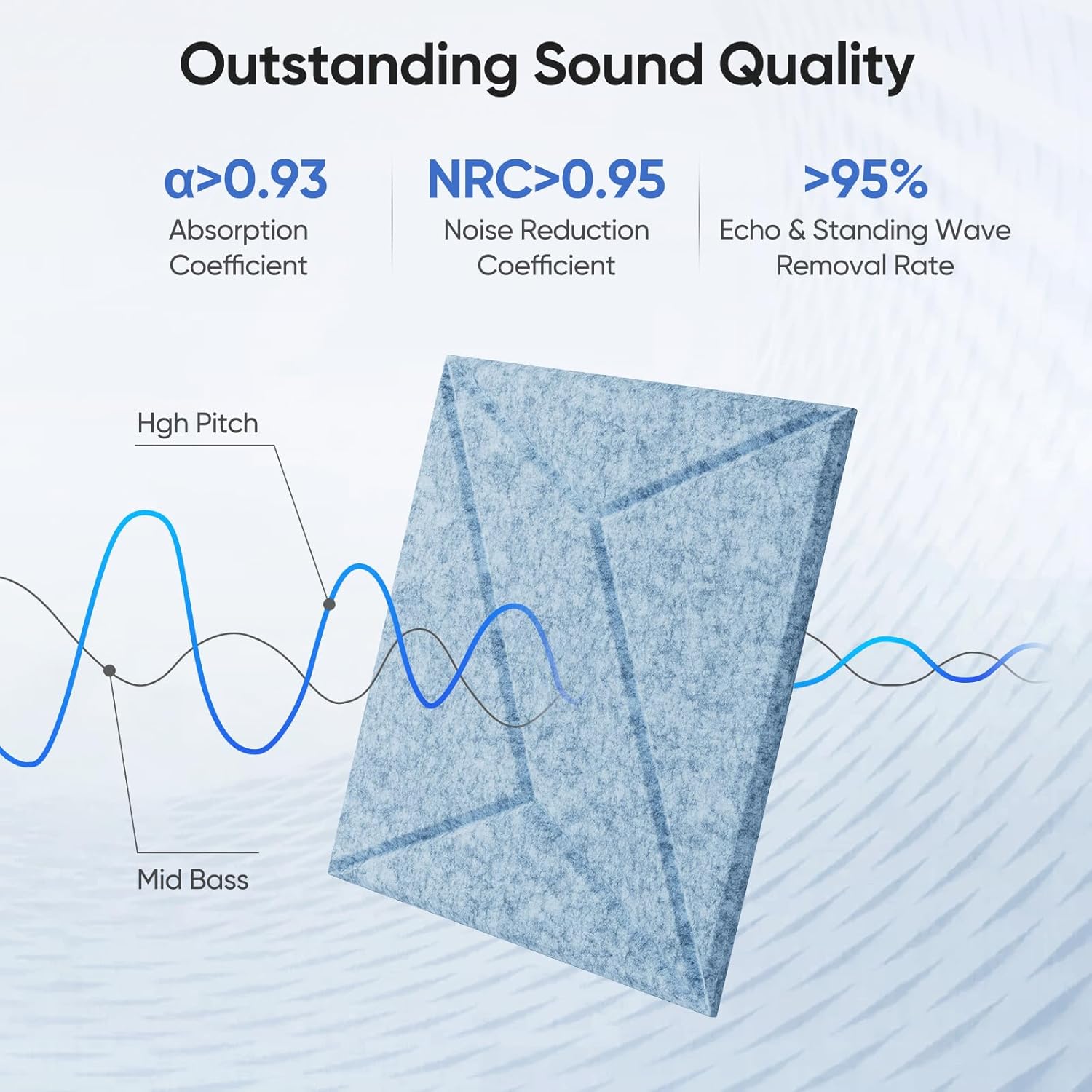 - Exceptional Sound Absorption -- Made with high-density polyester fiber (420 lb/m³), our panels achieve a sound absorption coefficient up to 0.95, effectively reducing echo and ambient noise.