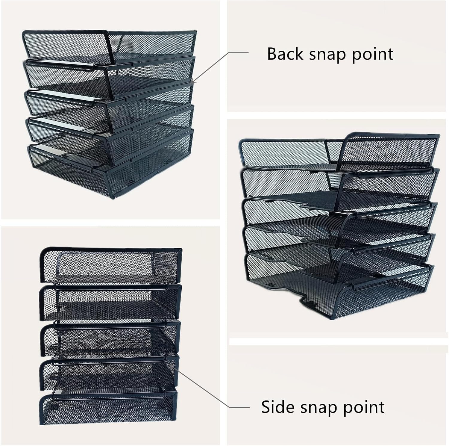 - 【Modular Stackable Design】: The desk organizer features 5 individual trays that can be stacked vertically or used separately. Arrange them as a space-saving tower for letters, files, and books, or split into single trays for pens, scissors, and sticky notes.