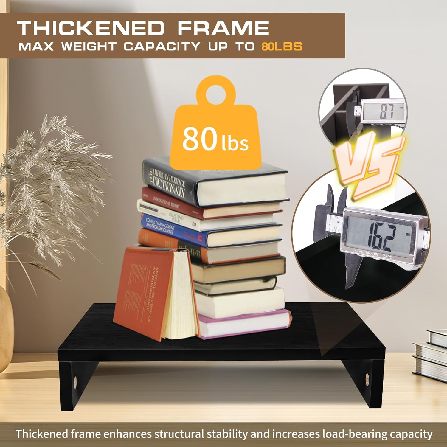 - Sturdy and Reliable Construction:Engineered to support up to 80 lbs, this stand riser provides exceptional stability for your office essentials. The reinforced frame and premium materials ensure long-lasting durability. The wooden monitor riser features soft rubber feet that provide complete stability for your display while protecting your desktop from scratches.
