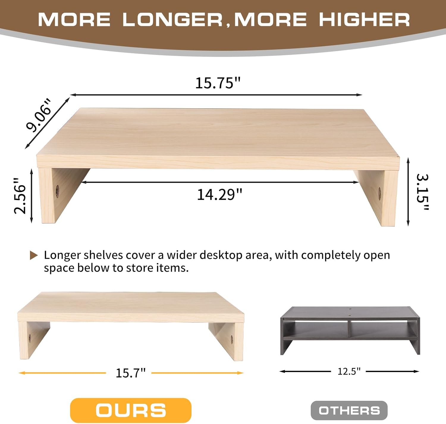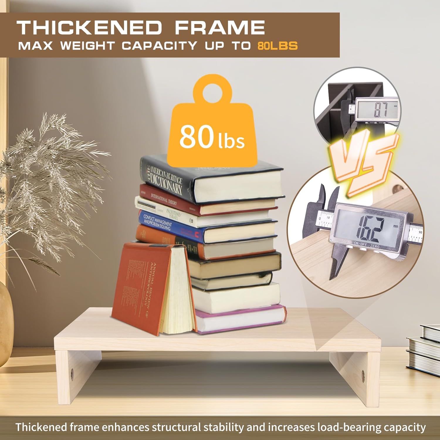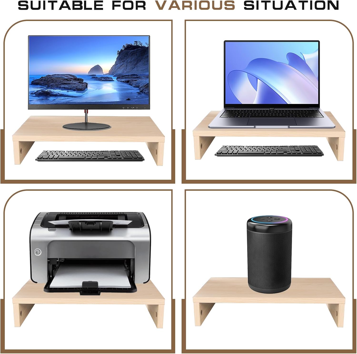 - Sturdy and Reliable Construction:Engineered to support up to 80 lbs, this stand riser provides exceptional stability for your office essentials. The reinforced frame and premium materials ensure long-lasting durability. The wooden monitor riser features soft rubber feet that provide complete stability for your display while protecting your desktop from scratches.