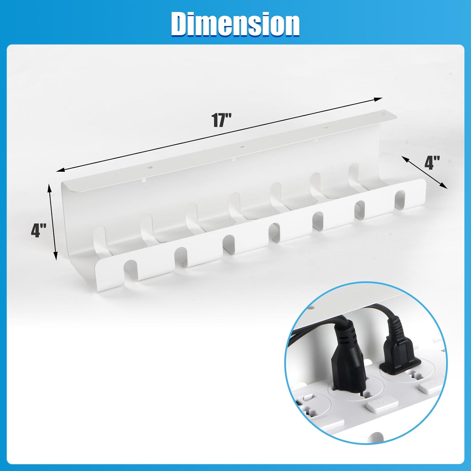 2 Pack Under Desk Cable Management Tray, 17" Wire Organizer for Power Strip, No Drill or Screw Mount, Easy Install Cord Raceway for Desk & Home, White
