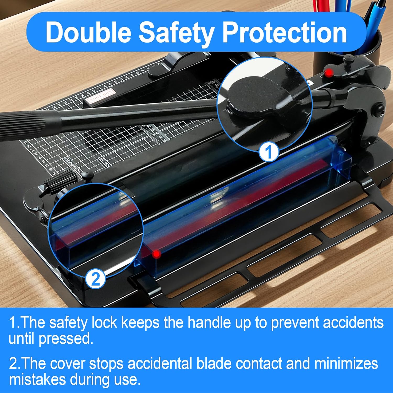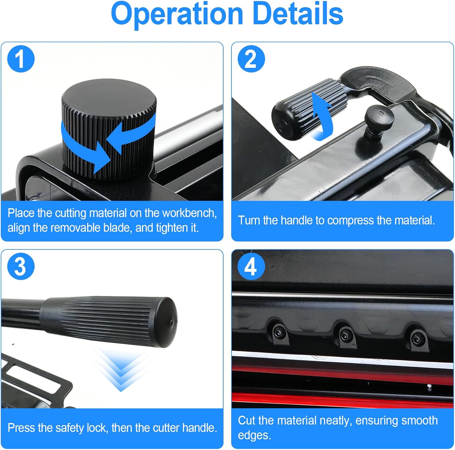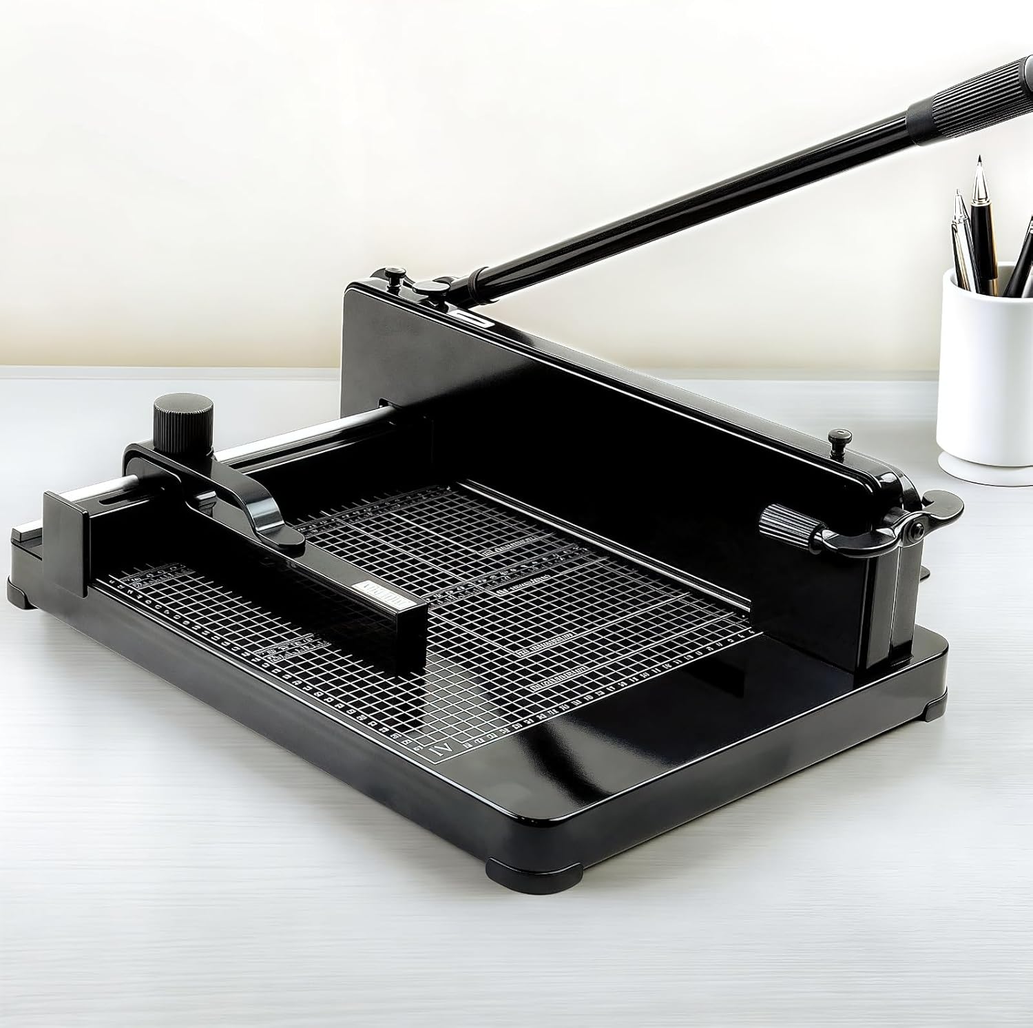 - [Heavy-Duty Multi-Material Cutting] This industrial-grade paper cutter handles up to 400 sheets (1.5" stack of A4) with ease, while also cleanly slicing through challenging materials like PVC, leather, and fabric - perfect for offices, copy shops, classrooms, and craft studios.