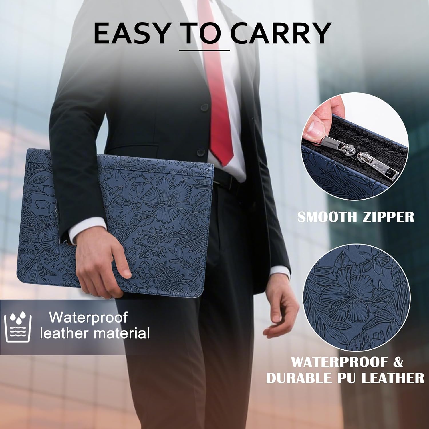 - 【Secure and Versatile - Padfolio with Zipper】The portfolio with 3 ring binder features a zipper to ensure the safety of your resumes, important documents, laptop, and cards. Additionally, the interior of padfolio for men include multiple compartments, keeping your essentials neatly organized and within easy reach, helping you stay confident and composed during interviews and work.