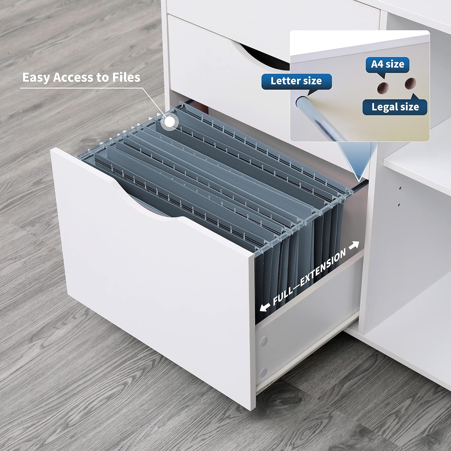 - AMPLE STORAGE: Spacious desktop can hold your printer or scanner. The drawer door design allows you to open easily without taking up your extra space. The filing cabinet is perfect for A4 paper