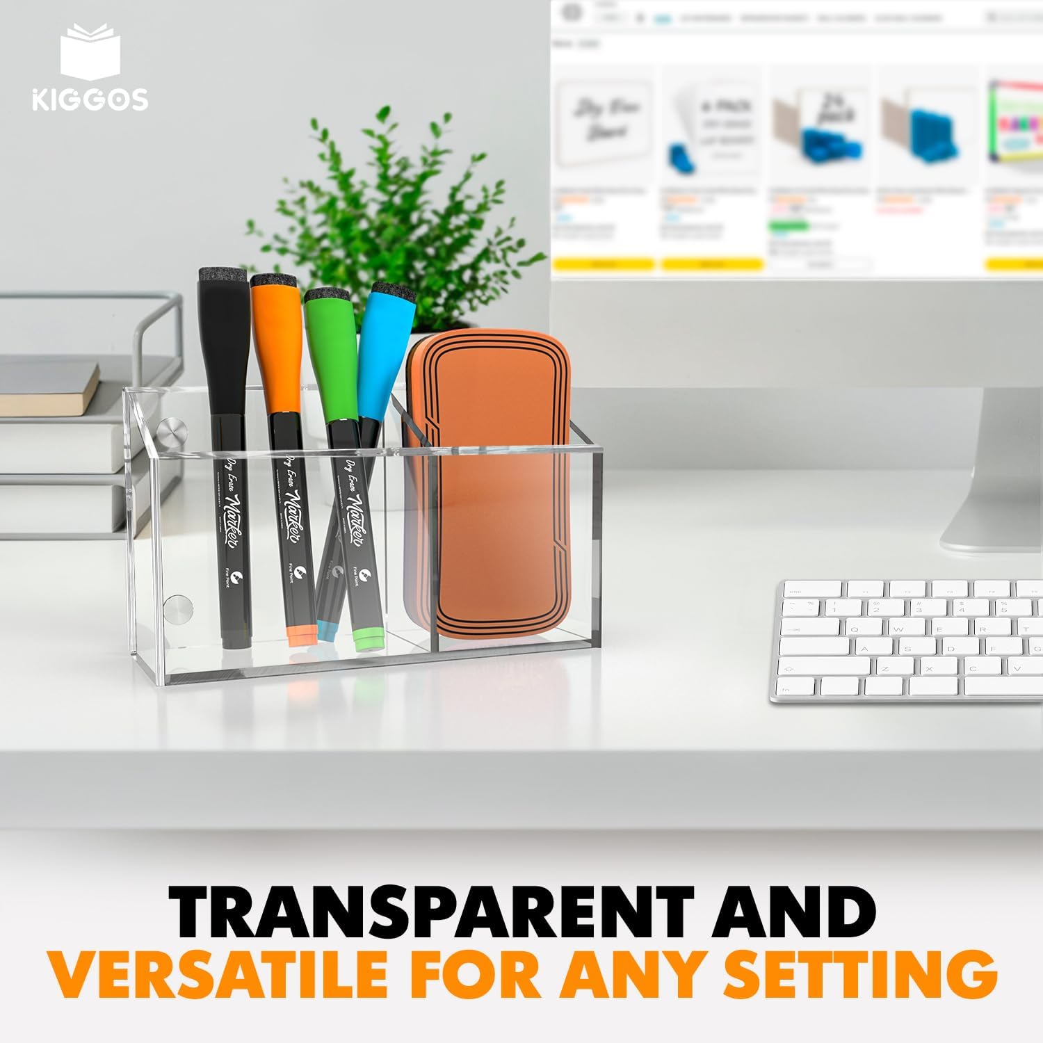 - š§² Magnetic Backing ā The acrylic caddy easily attaches to any magnetic whiteboard, fridge, or metal surface. The white board marker holder holds firm without sliding or falling even when fully loaded