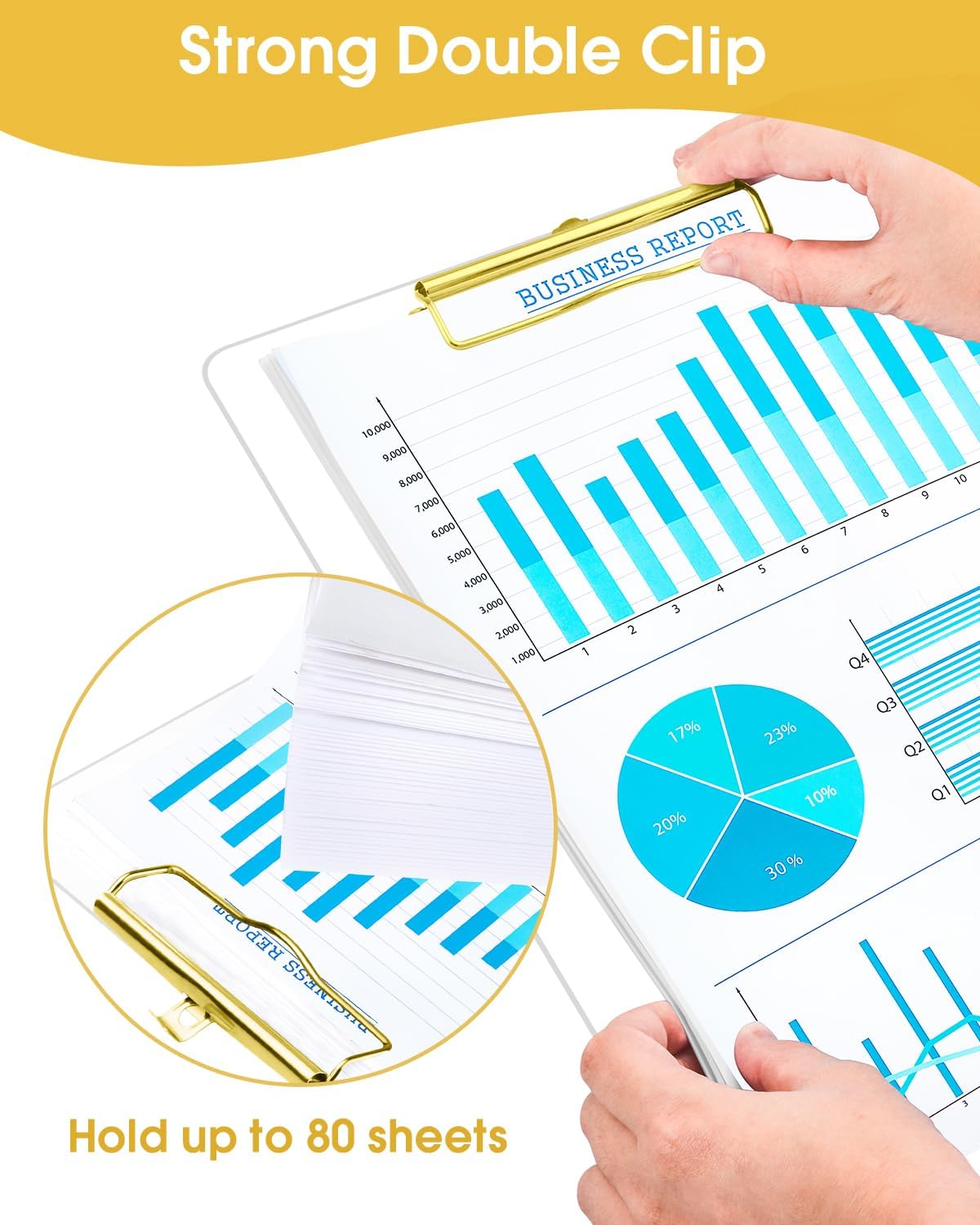 Honagu Acrylic Clear Clipboards, Transparent Plastic Clipboard with Gold Strong Clip Hidden Hanging Hole, A4 Letter Size Clipboards for Nurses, Art Student, Teachers,School & Office Supplies, 3PC