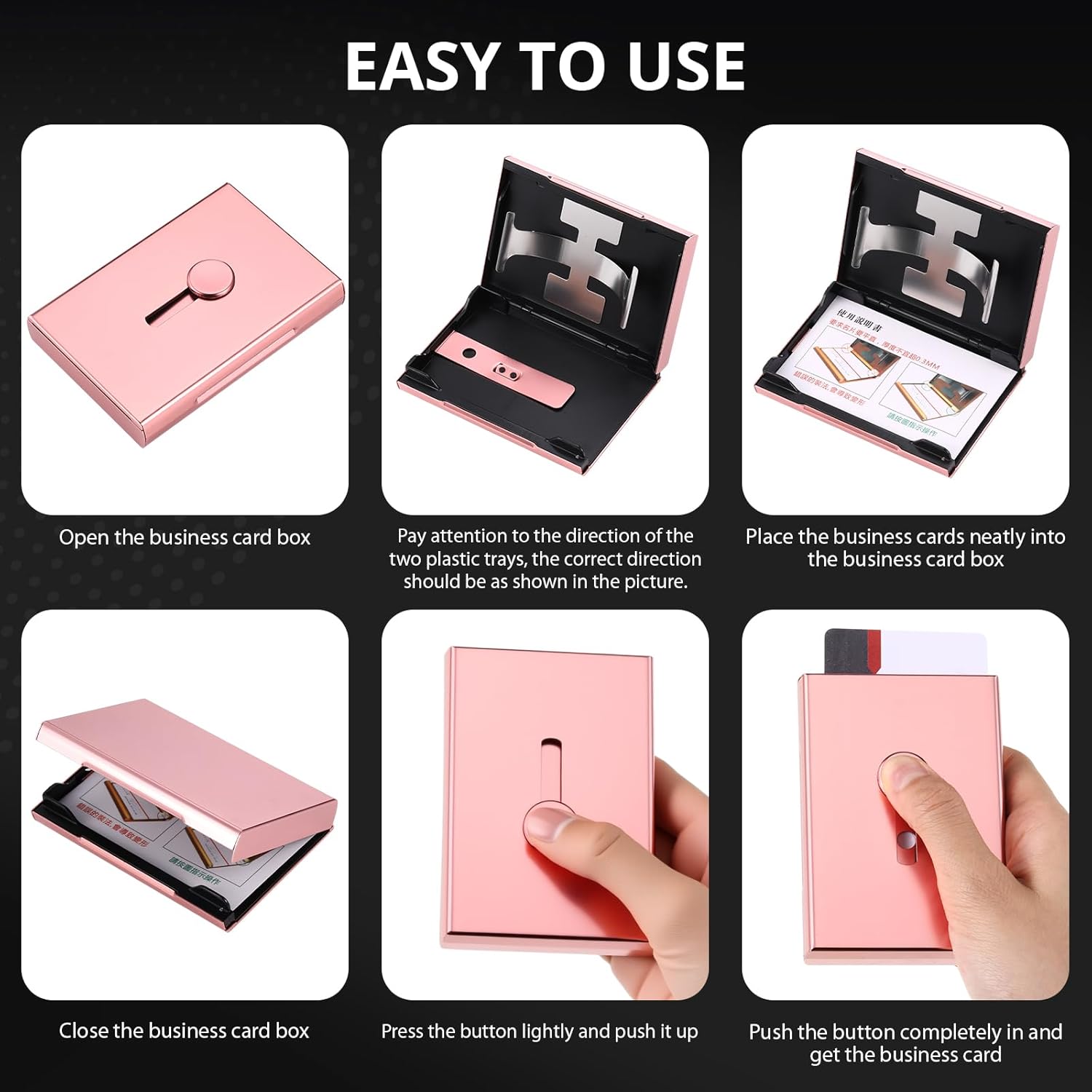 - Durable Material: our business card dispenser is made of a lighter and more durable aluminum alloy material, which is not easy to deform and durable, and is equipped with a magnetic buckle switch, which is not easy to scratch the business card
