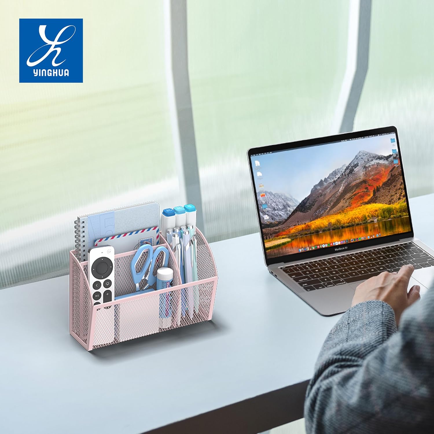 - Smart 3-Compartment Design for Better Organization β Featuring three neatly divided sections, this sleek pink pen organizer for desk keeps pens, clips, sticky notes, and desk supplies neatly sorted. The open mesh design allows easy visibility and quick access, making it an ideal desk organizer caddy for a clutter-free workspace, home, or school