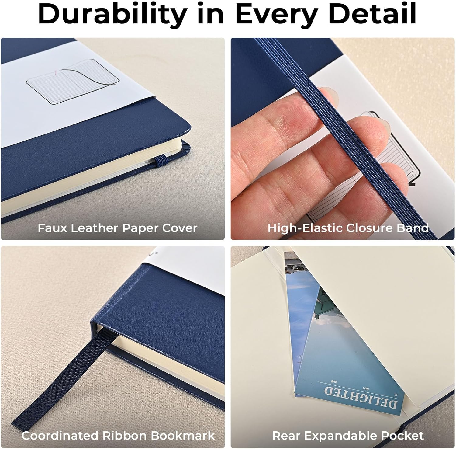- Durable & Water-Resistant Hardcover: Built to last, our journal features a sturdy, premium faux leather hardcover that is both water and stain-resistant, protecting your notes in any situation. The solid construction provides a firm writing surface, ensuring your notebook withstands the rigors of daily use at home, in the office, or on the go.