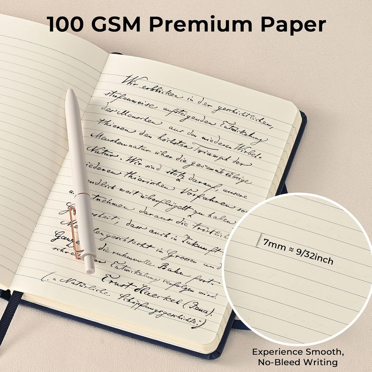 - Premium 100gsm Ink-Proof Thick Paper: Experience pure writing bliss on our 160 pages (80 sheets) of high-quality 100gsm acid-free paper. The extra-thick and smooth surface prevents ghosting and ink bleeding, making it perfect for everything from fountain pens to fine-liners. Enjoy a flawless writing experience on every page.
