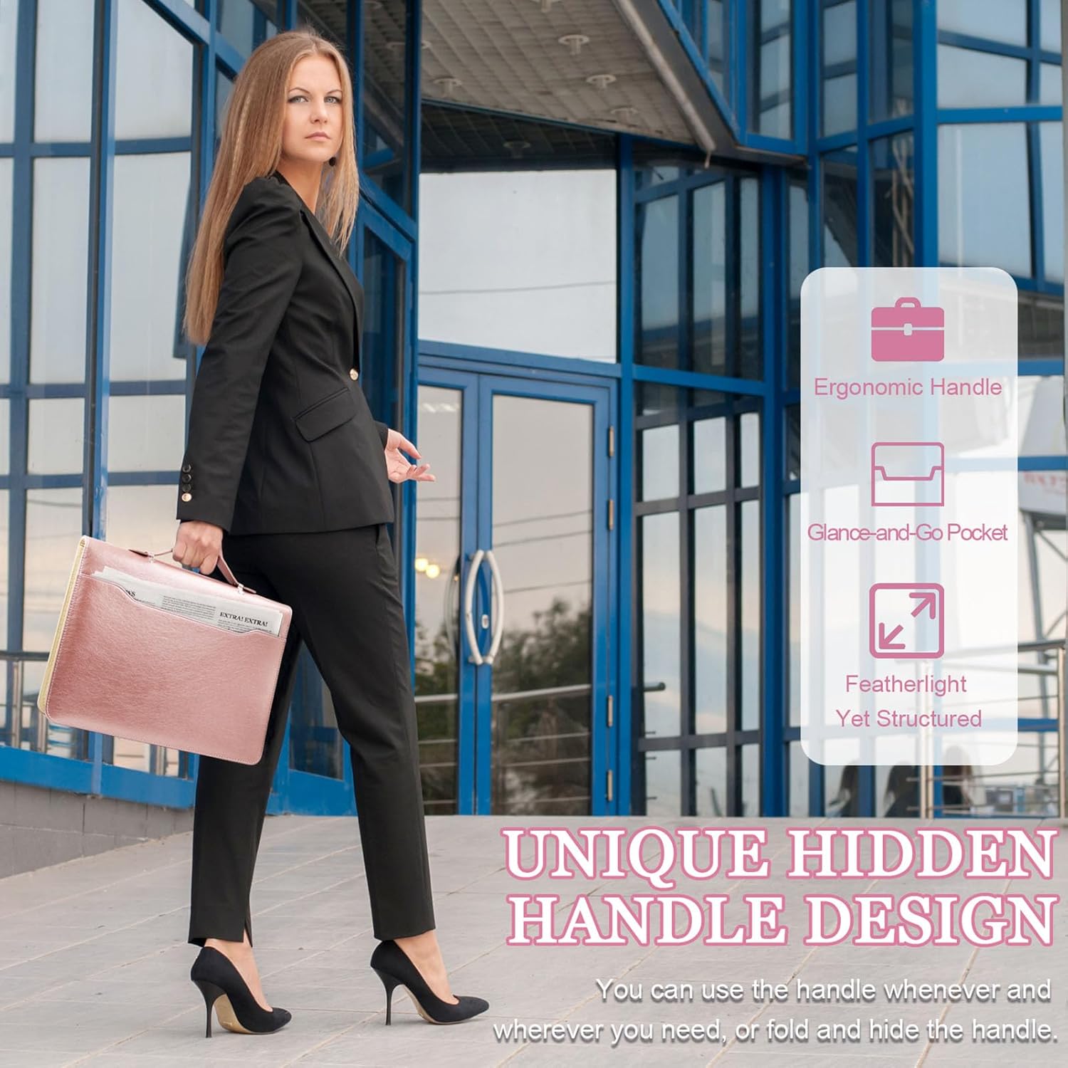 - 【Portfolio Binder with Retractable Handle】This portfolio folder organizer features a hidden and sturdy handle for easy carrying, ensuring your important documents are securely stored and quickly accessible when needed. Perfect for any setting, including meetings, client presentations, or interviews. Its lightweight design and smart organization provide convenience for your daily life and work.
