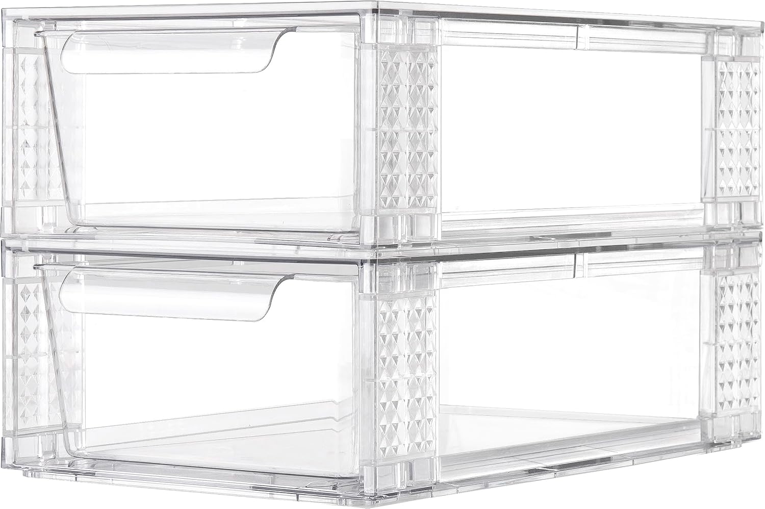 2 Pack Clear Stackable Storage Drawers, 3.95" H Easily Assemble Acrylic Organizer Bins - Multi-Use for Make up, Closet, Pantry, Bathroom, Medicine, Kitchen Cabinet & Undersink Organization