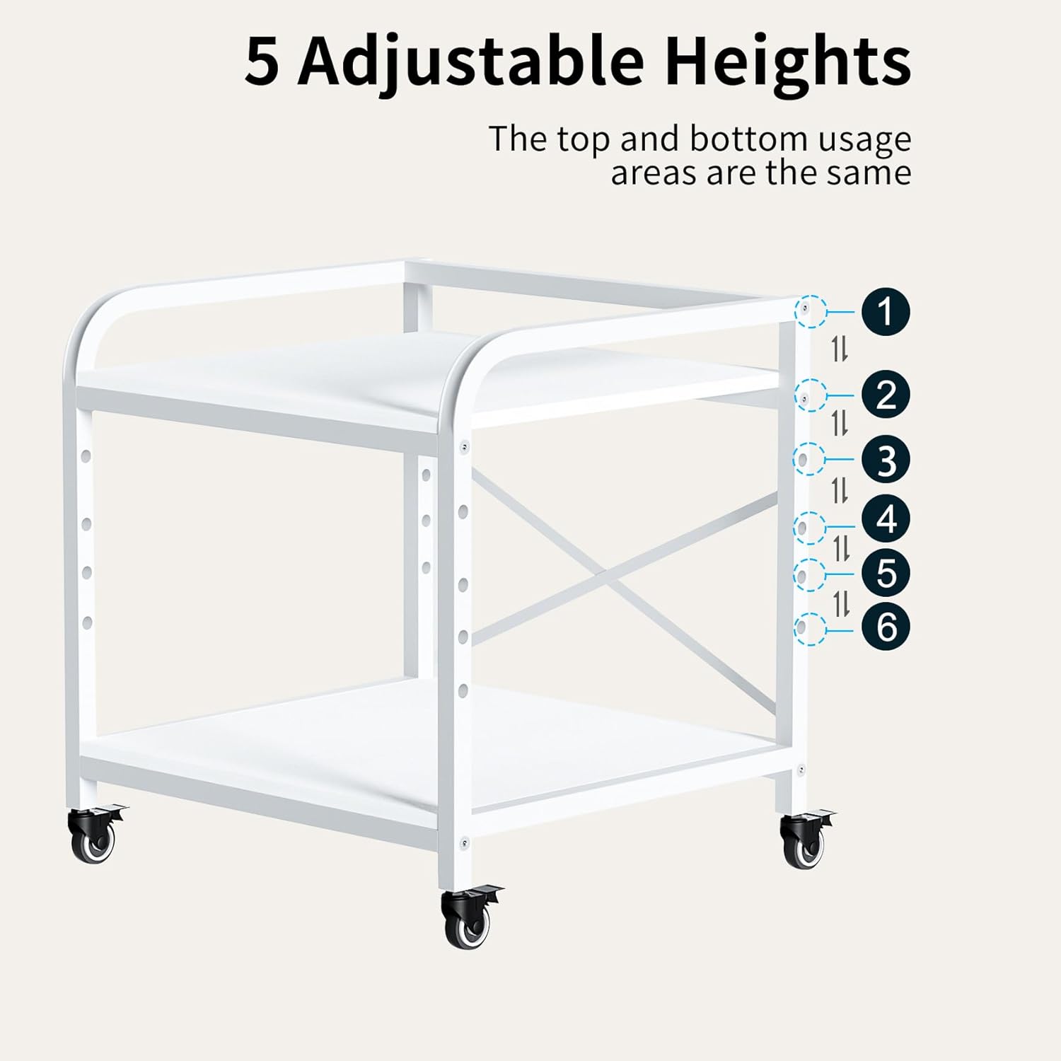 - Space-Saving & Flexibility: This versatile under-desk printer cart features a 5-level height adjustment, with the flexibility to detach each shelf individually. To save space, simply lower the shelf and slide your printer under the desk.