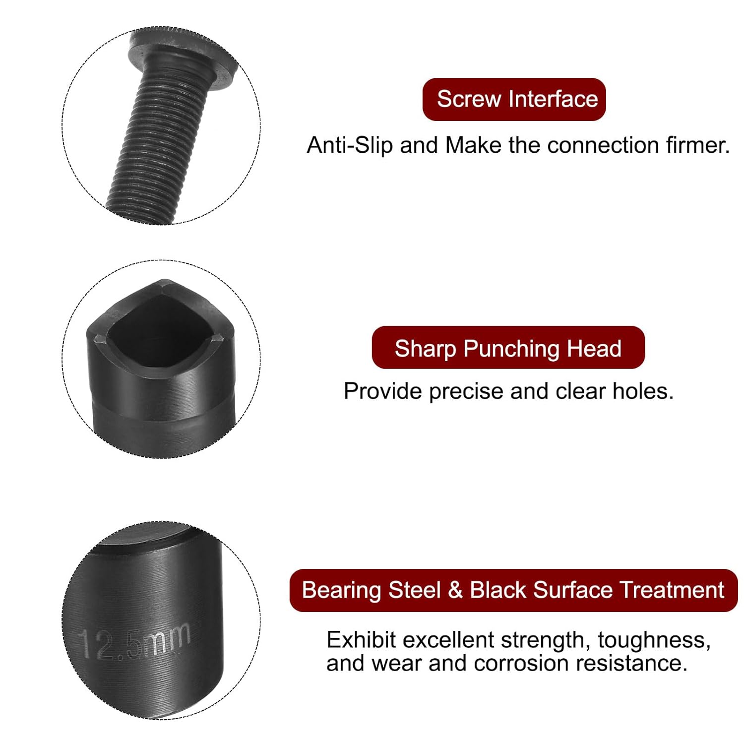 HARFINGTON Sheet Metal Punch Hole Punch 12.5mm Bearing Steel Precise Cutting Manual Knockout Kit with External Hex Shank for Metal Steel Plate Sink Stainless Steel, Black