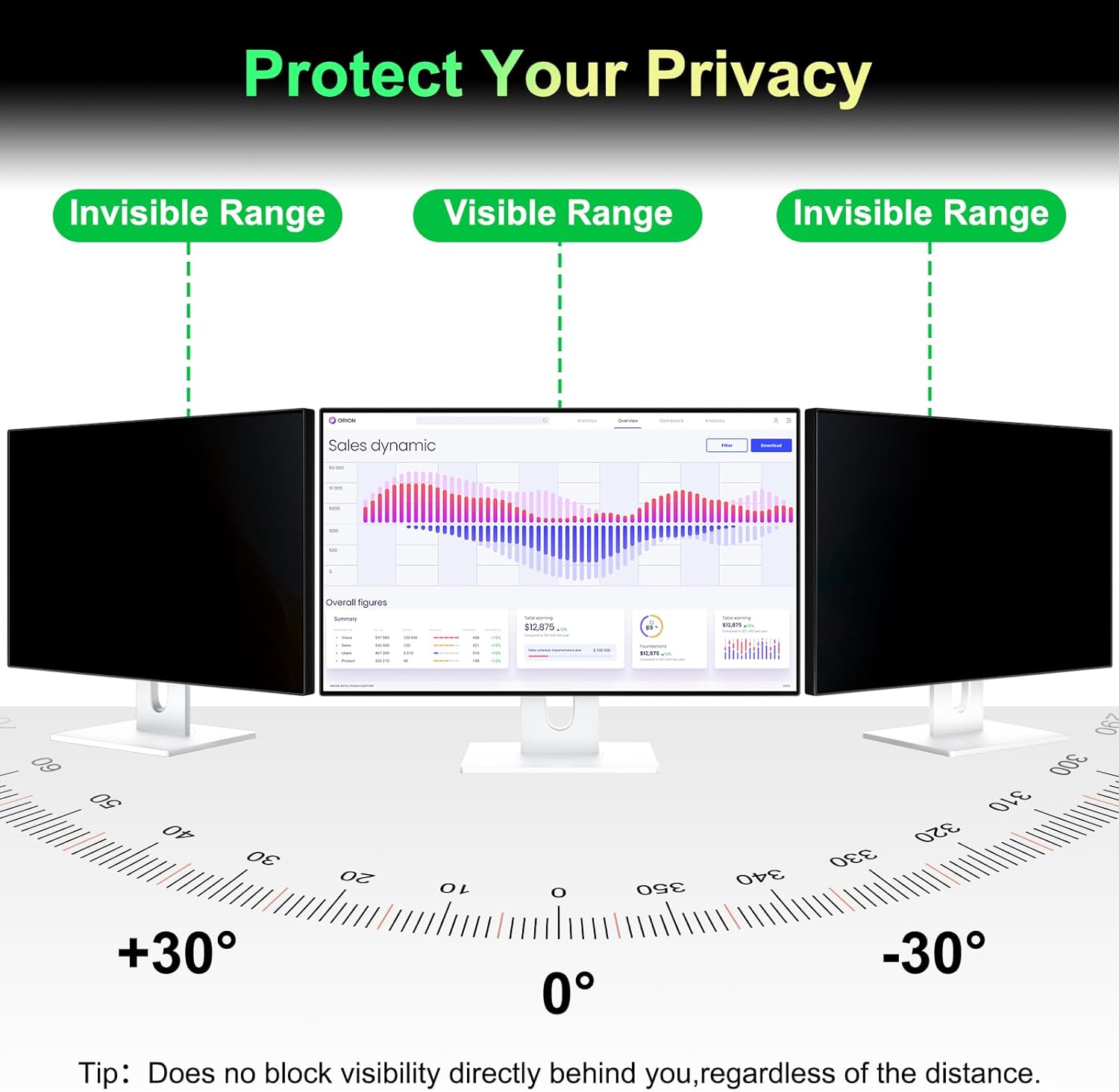 - 【PERFECT FOR OPEN WORKSPACES】 LUSA DESIGN is committed to improving workplace security and making the work environment safer and more comfortable. Whether it's R&D data,financial data, and other data that needs to be kept confidential, our monitor privacy screen 23.8 inch blocks direct prying eyes from 30+ angles from the side. You no longer need to be constantly alert to whether people around you are seeing your private or confidential data. Full of security! * Doesn't block visibility behind you