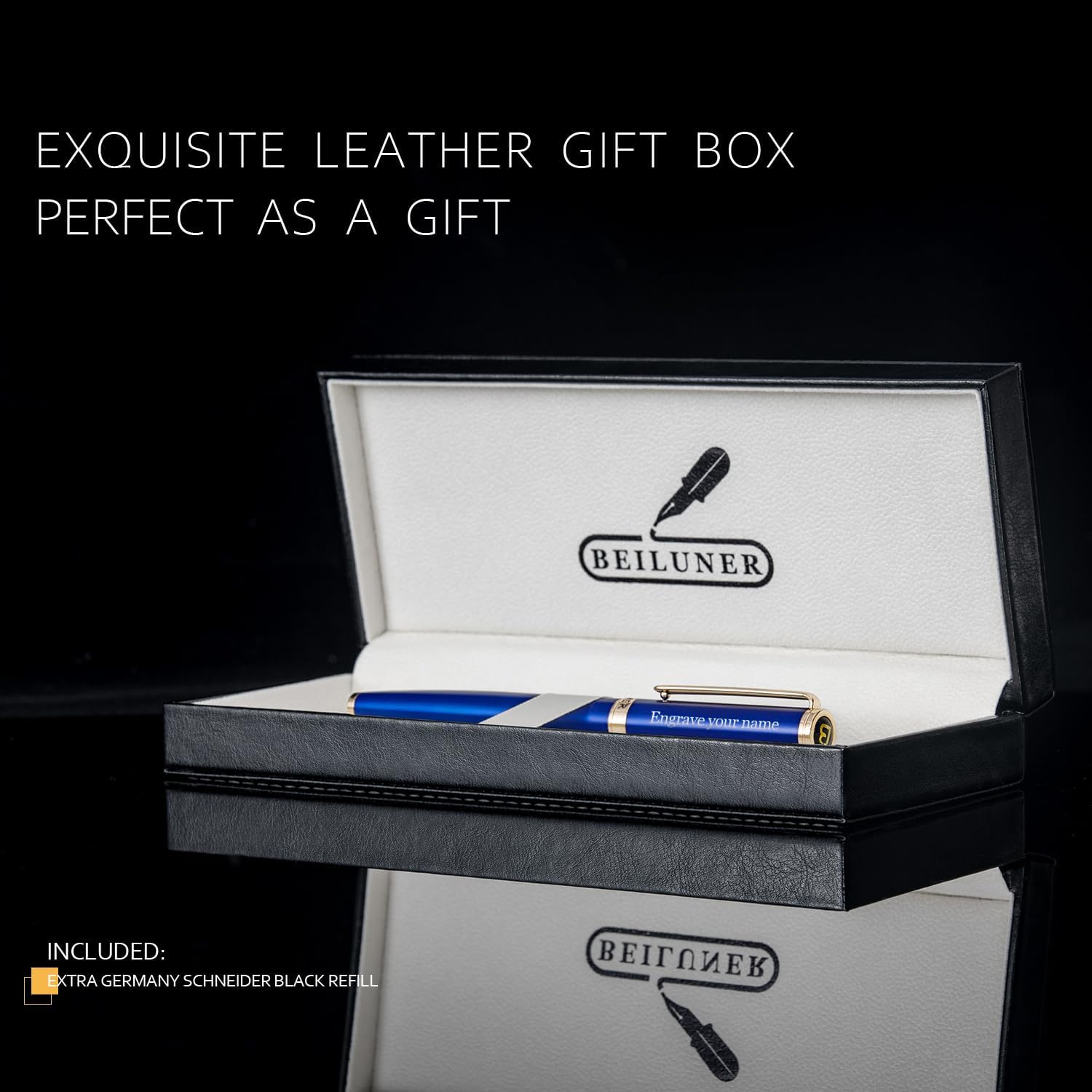 - Elegant Gift Box for Unboxing Luxury-Presented in an exquisite leather gift box, this pen is an ideal gift for any occasion. Whether it’s a birthday, graduation, or a special corporate gift, the Pen is sure to impress and leave a lasting impression. Comes with an extra Schneider refill!