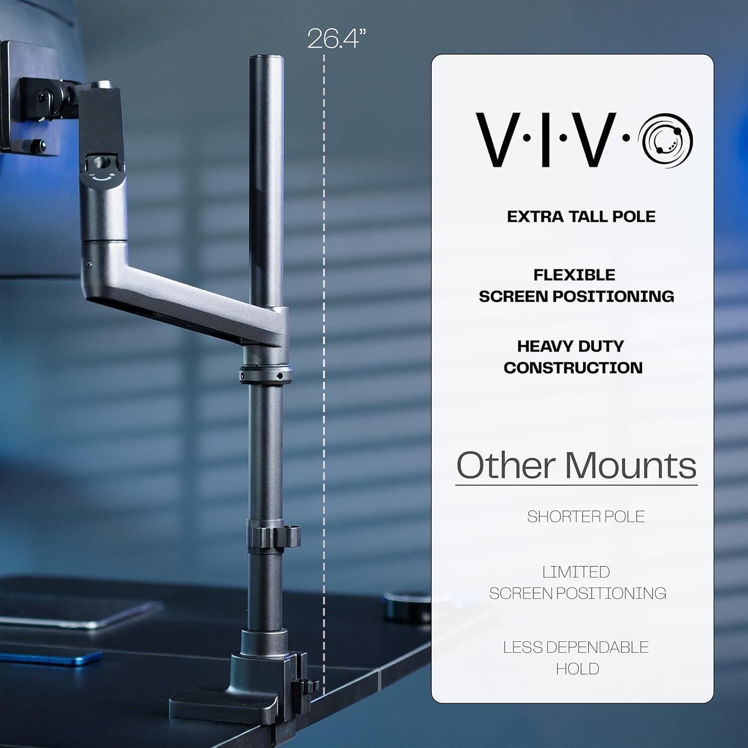 VIVO Pneumatic Arm Single Ultrawide Monitor Extra Tall Desk Mount for Up to 49 inch Screens, Heavy Duty Clamp, Holds Ultra Wides Up to 44 lbs, Black, STAND-V110K