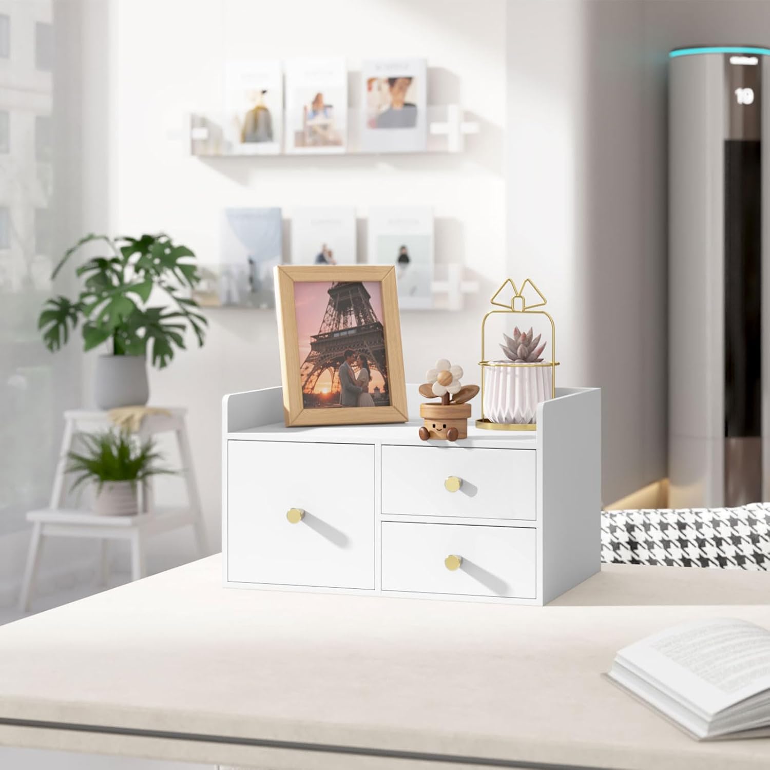 - Ample Storage Capacity: With multiple size drawers, the desktop storage efficiently organizes office supplies, cosmetics, accessories, and daily essentials. Dimensions: 12.2" x 8.58" x 7.09" – compact yet versatile for various spaces.