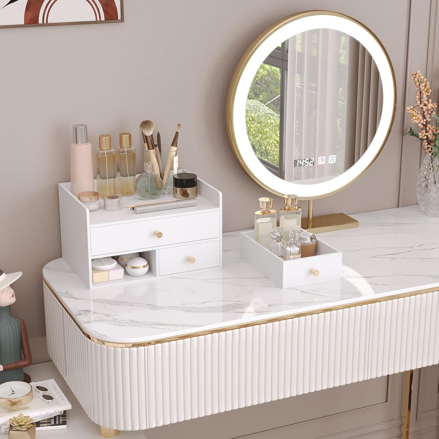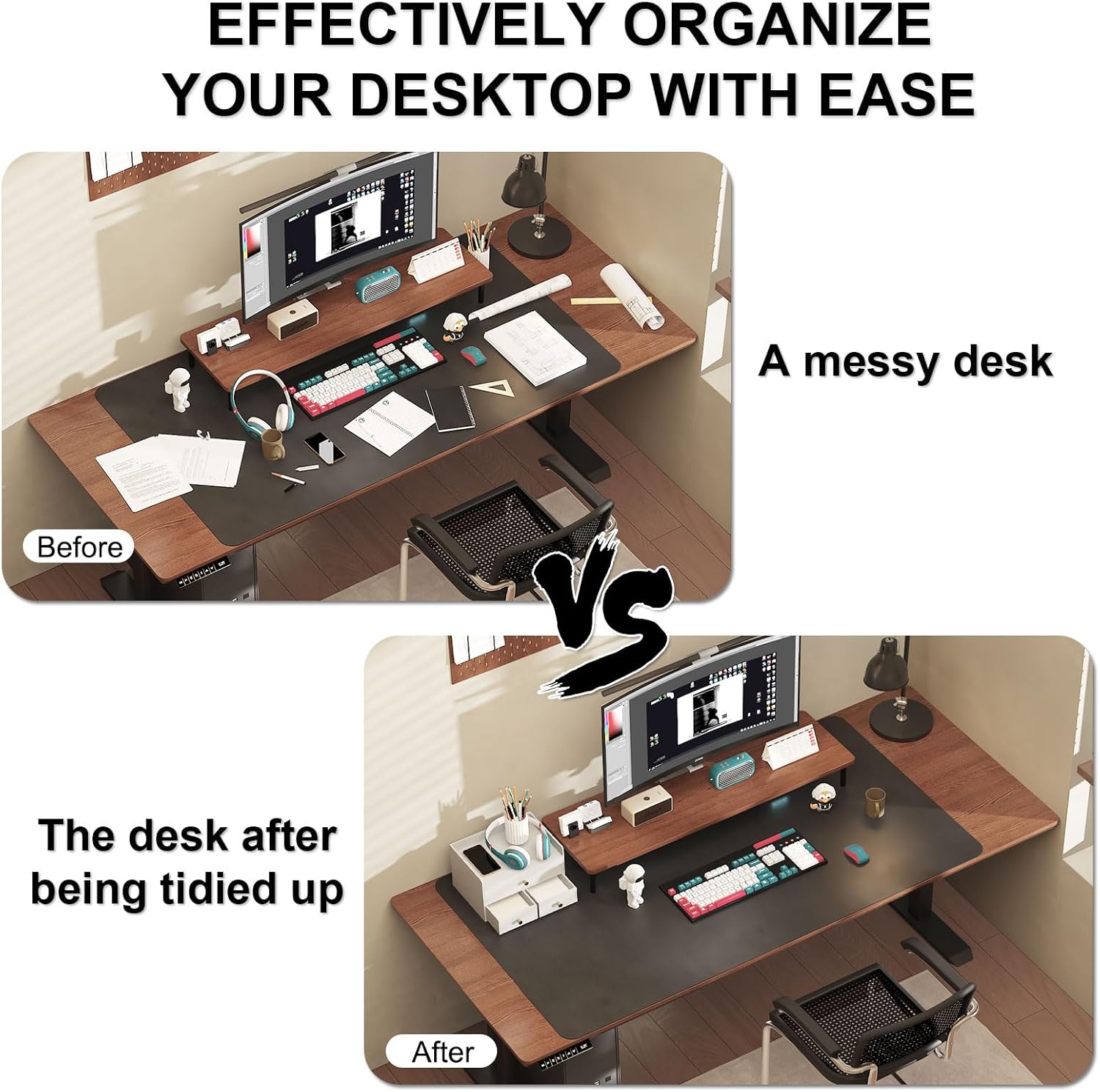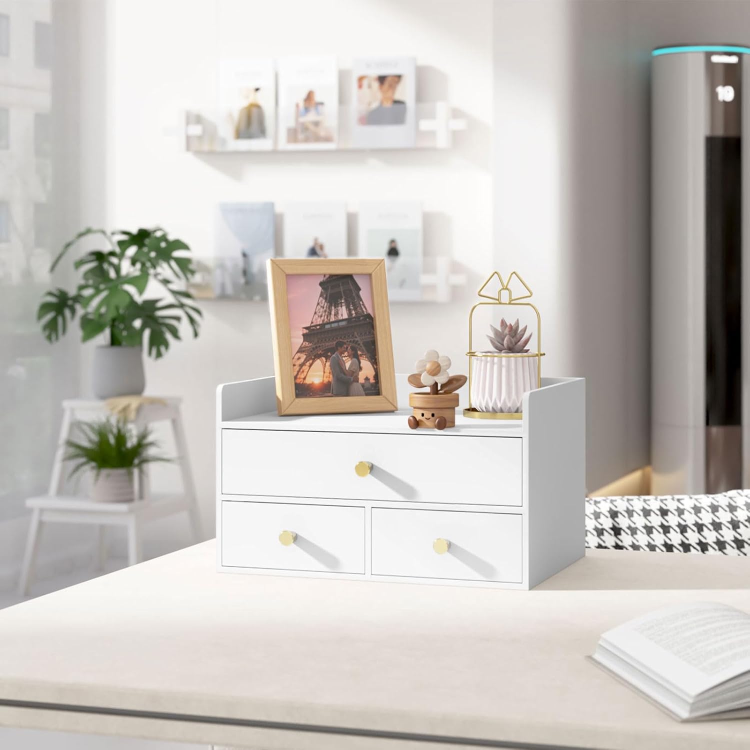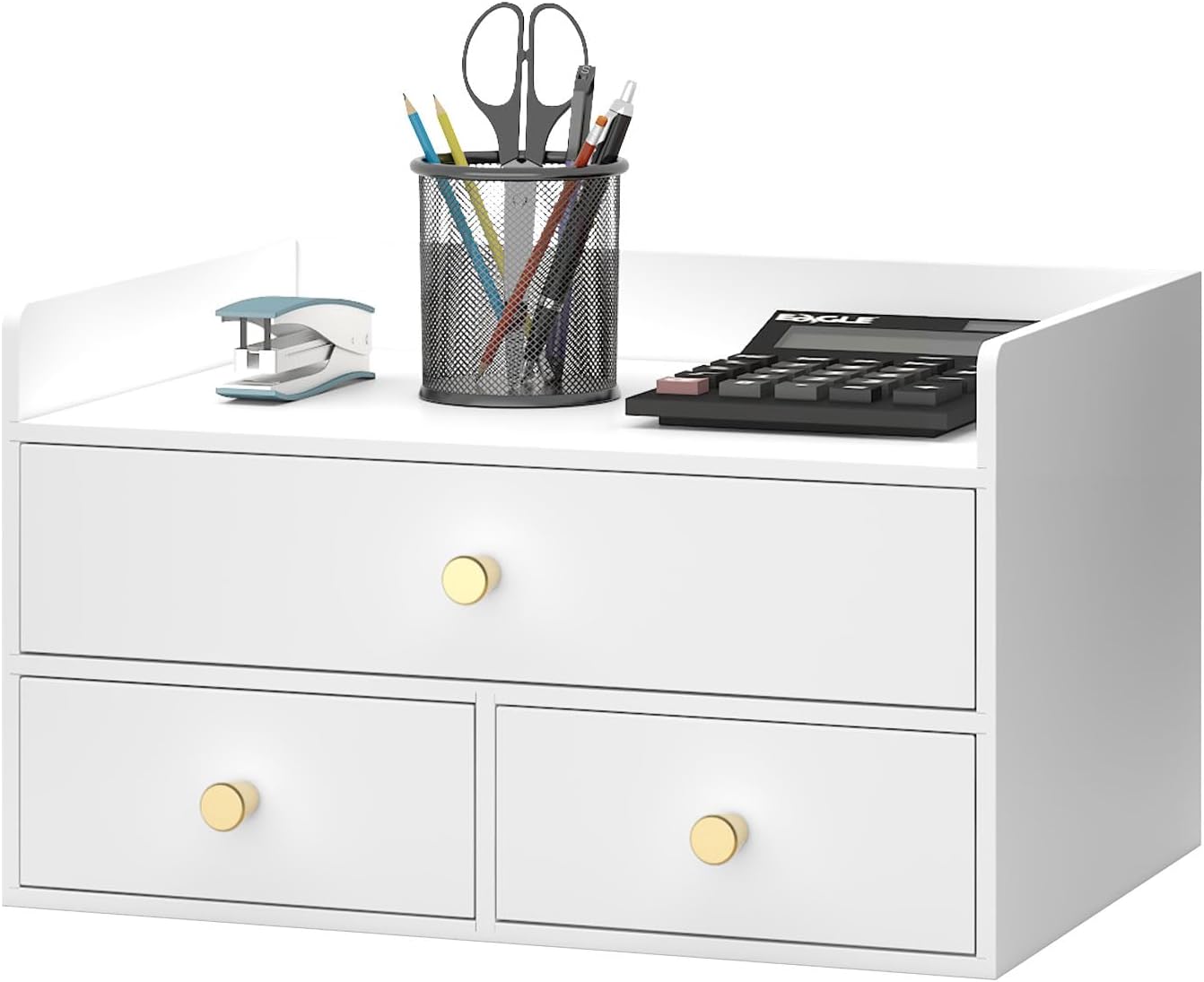- Ample Storage Capacity: With multiple size drawers, the desktop storage efficiently organizes office supplies, cosmetics, accessories, and daily essentials. Dimensions: 12.2" x 8.58" x 7.09" – compact yet versatile for various spaces.