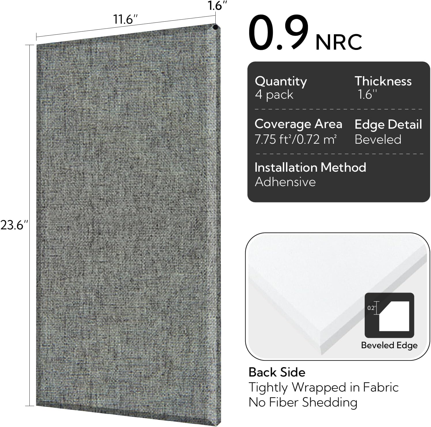 - Sound Dampening Panel 4 Pack: 11.8 X 23.6 Inches per sound proof panel for walls. Olanglab sound absorbing acoustic panel is 1.6'' thick, thicker than conventional 1'' panels, resulting in better sound absorption.