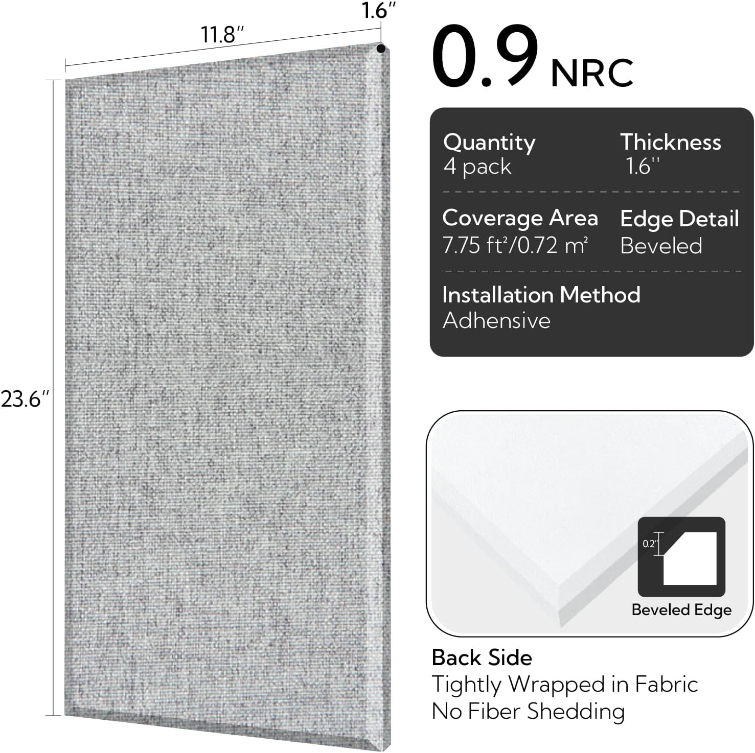 - Sound Dampening Panel 4 Pack: 11.8 X 23.6 Inches per sound proof panel for walls. Olanglab sound absorbing acoustic panel is 1.6'' thick, thicker than conventional 1'' panels, resulting in better sound absorption.