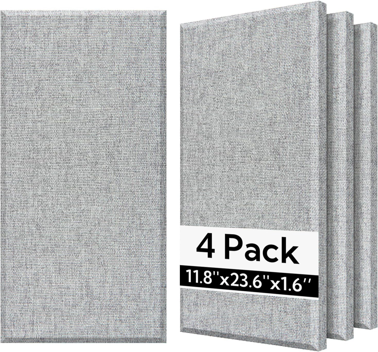 Olanglab Fiberglass Acoustic Wall Panels 4 Pack, 11.8'' x 23.6'' Sound Panels, Fabric Wrapped Sound Proof Panels for Walls (Light Gray)