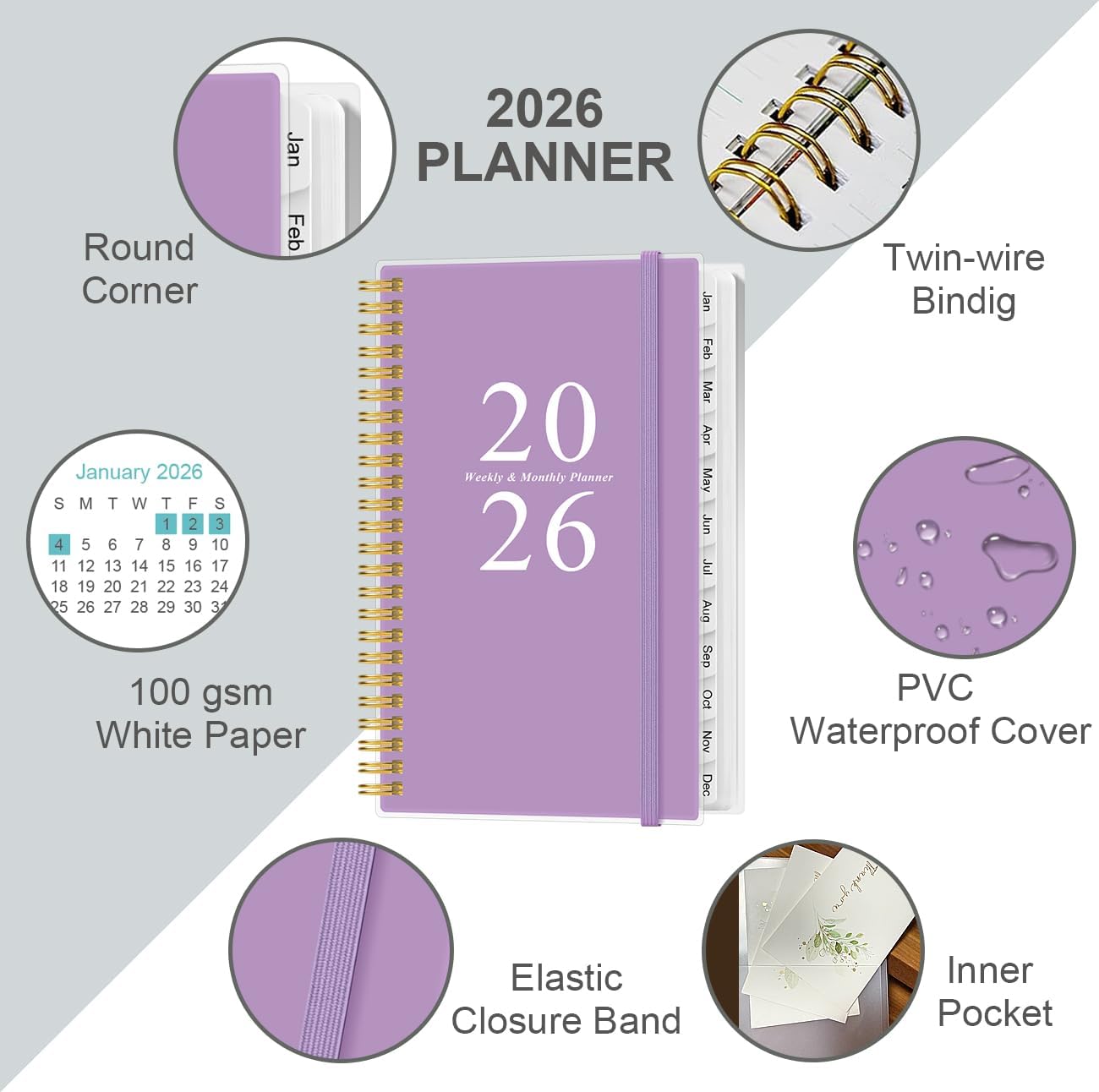 - PREMIUM THICK PAPER - This 2026 weekly & monthly planner is white paper, thicker at 20% than normal, the paper of this planner is ink-proof and is designed to avoid feathering. Archival-quality pages made from acid-free paper, resistant from damage by light and air.