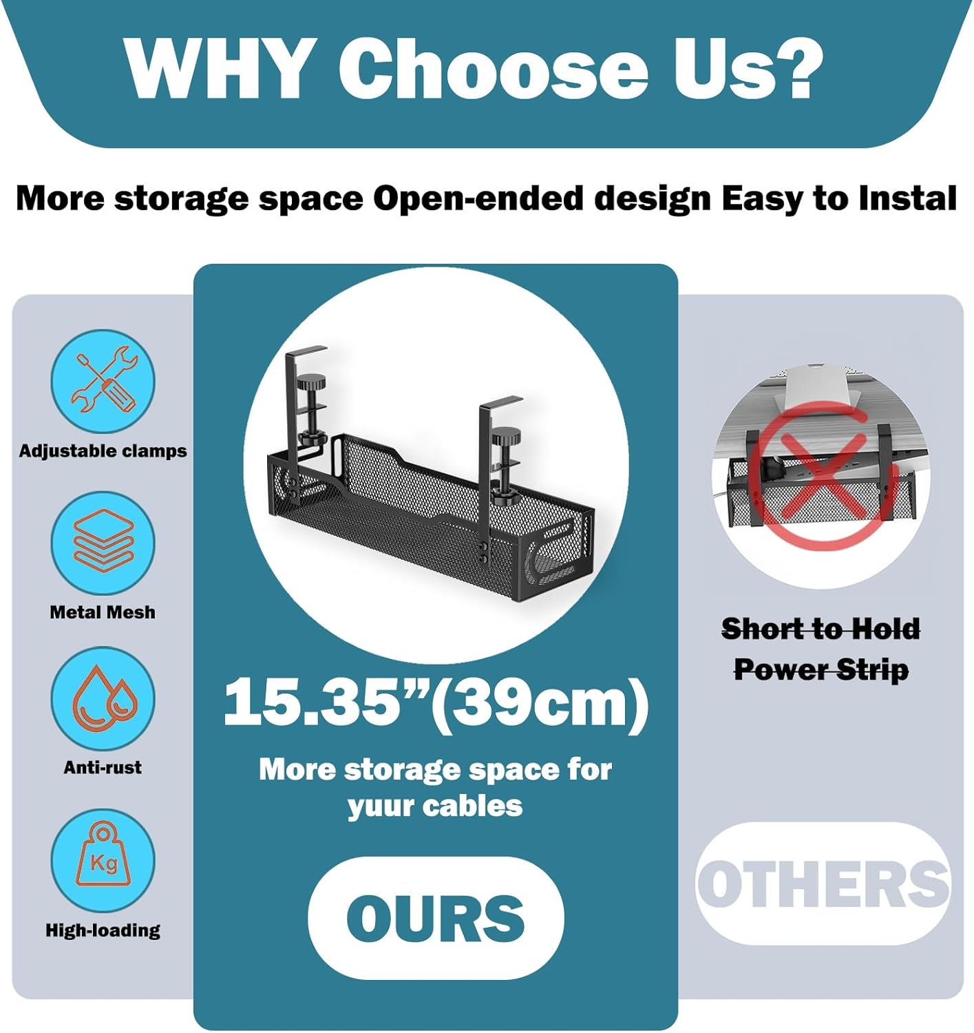 - 【Sturdy Structure】This under desk cable management tray is made of high quality steel, sturdy and durable, praise ability, not easy to rust, long service life. The mesh cable management under desk has an elegant and beautiful design. Built-in non-slip rubber pads protect your desktop from scratches. Supporting up to 15 lbs. As a reliable desk cable tidy, it enhances your workspace without clutter.