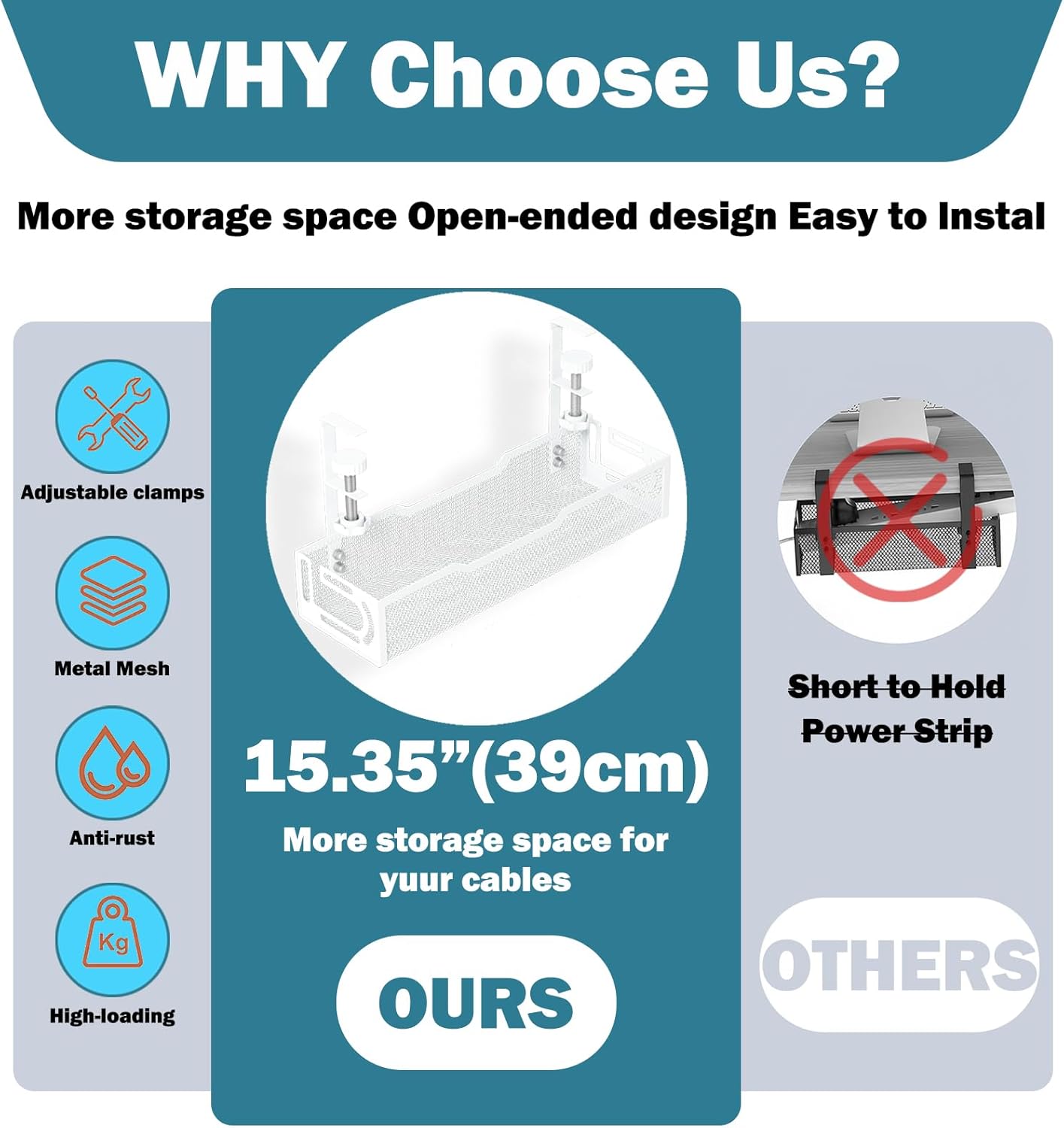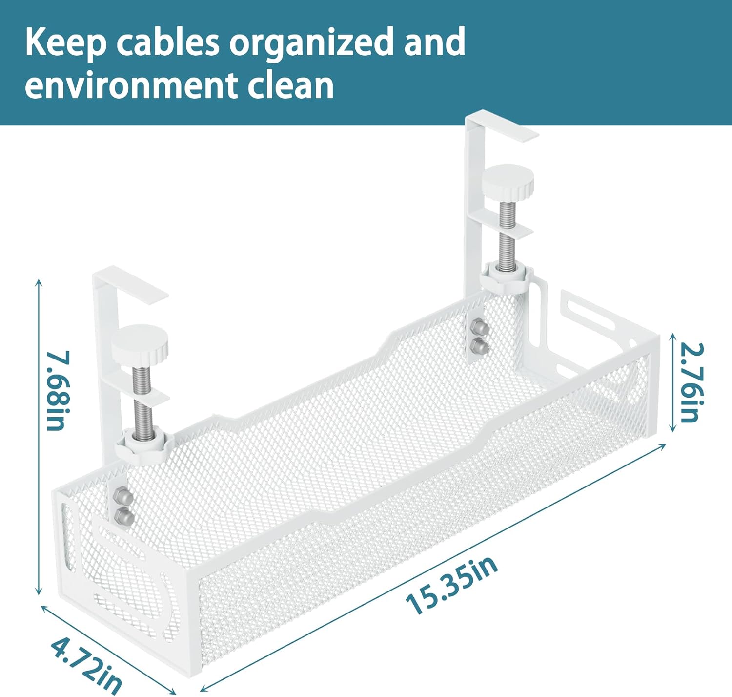 - 【Sturdy Structure】This under desk cable management tray is made of high quality steel, sturdy and durable, praise ability, not easy to rust, long service life. The mesh cable management under desk has an elegant and beautiful design. Built-in non-slip rubber pads protect your desktop from scratches. Supporting up to 15 lbs. As a reliable desk cable tidy, it enhances your workspace without clutter.